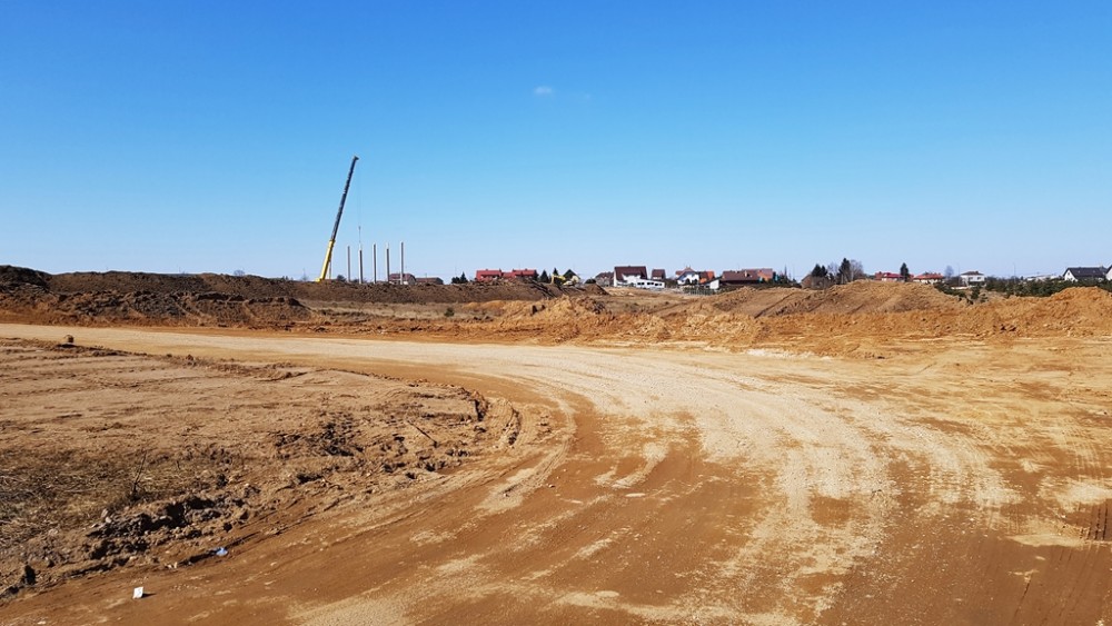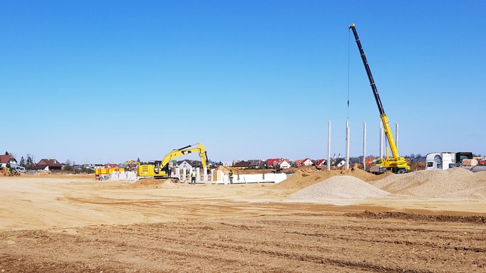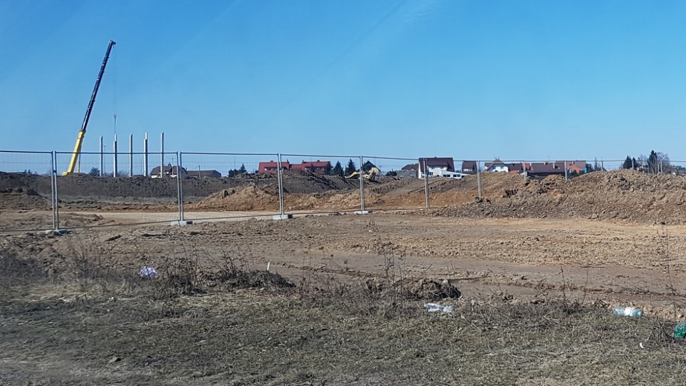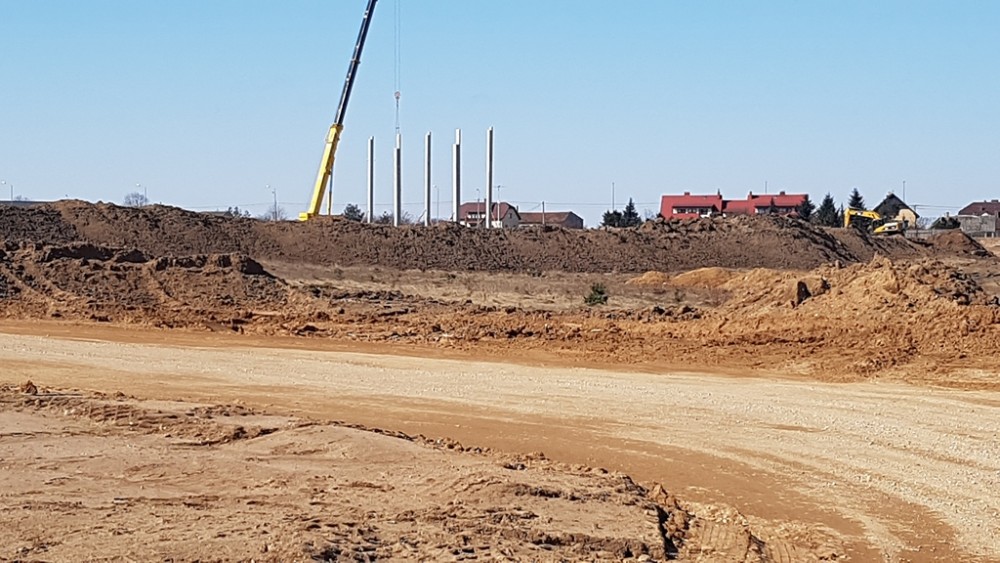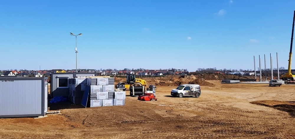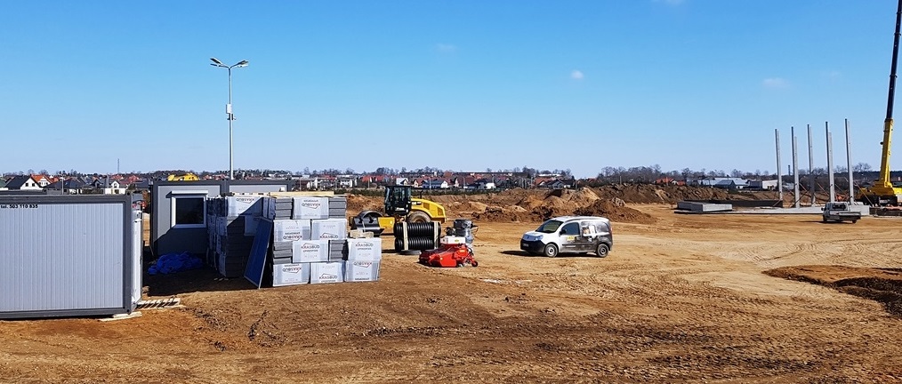 Z poczÄ…tkiem roku wzdÅ‚uż dużej dziaÅ‚ki ciÄ…gnÄ…cej siÄ™ od ulicy LeÅ›nej aż do Raczkowskiej (wczeÅ›niej Buczka) ustawiono ogrodzenie. NiedÅ‚ugo później pojawiÅ‚y siÄ™ pierwsze maszyny budowlane. Tak rozpoczęły siÄ™ prace ziemne i wykopy, a nastÄ™pnie budowa fundamentów. Teraz stawiane sÄ… elementy konstrukcyjne przyszÅ‚ej hali magazynowej.