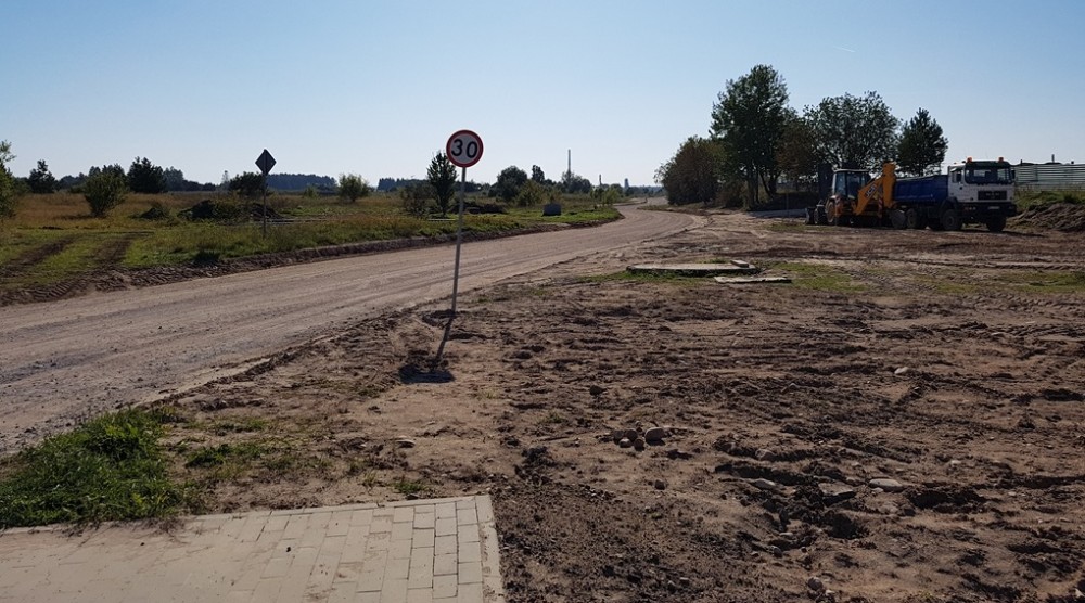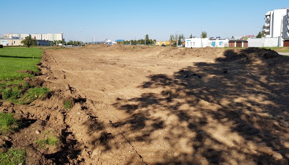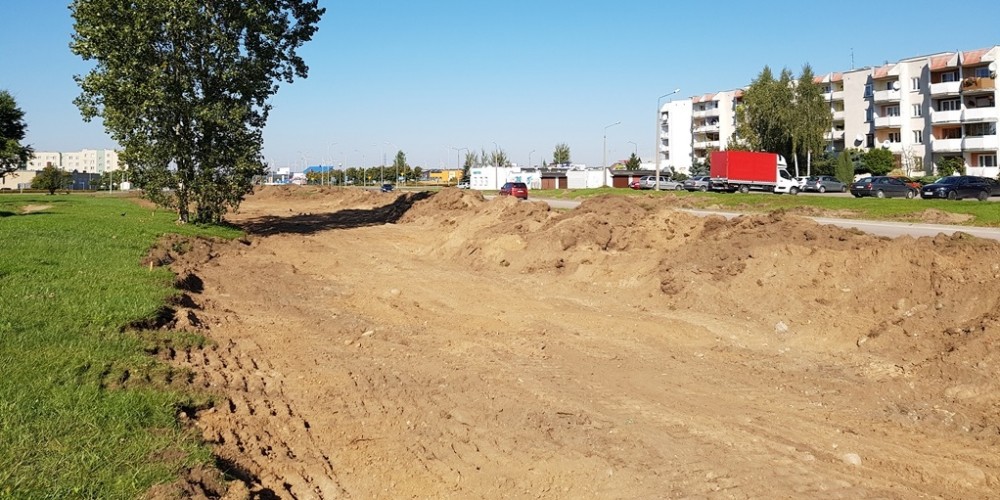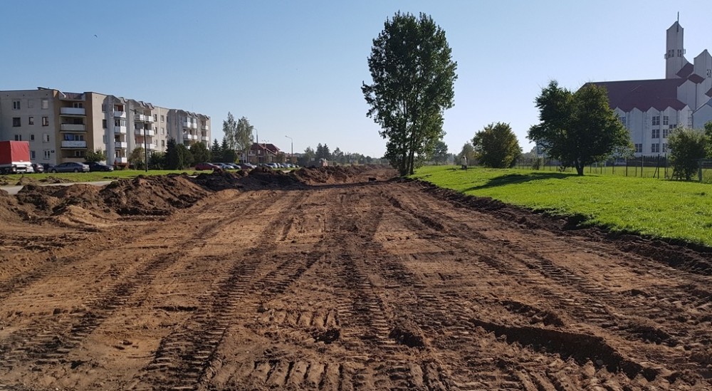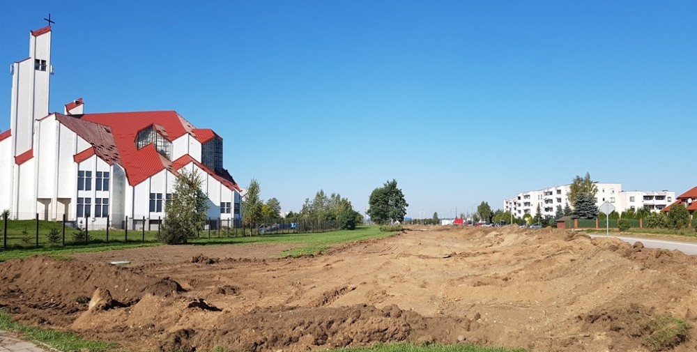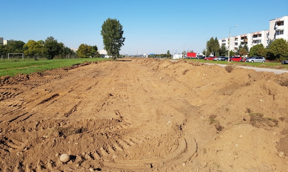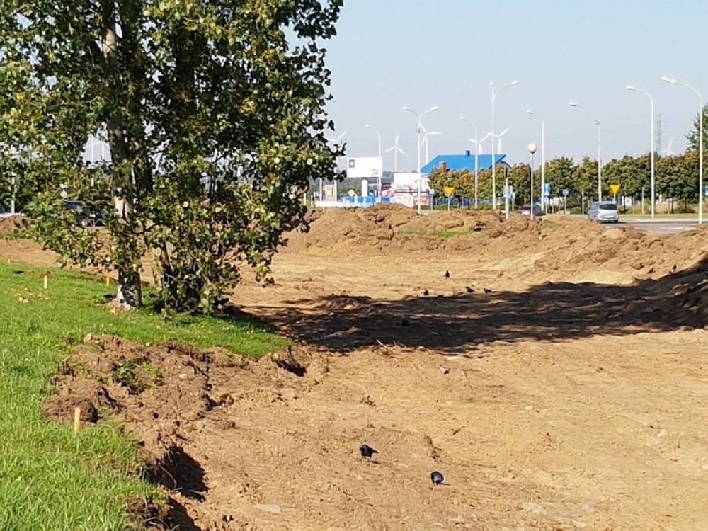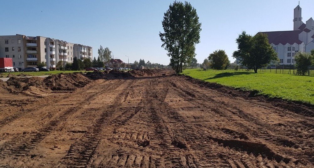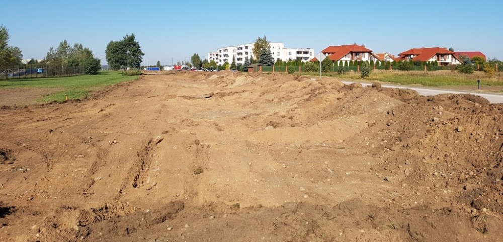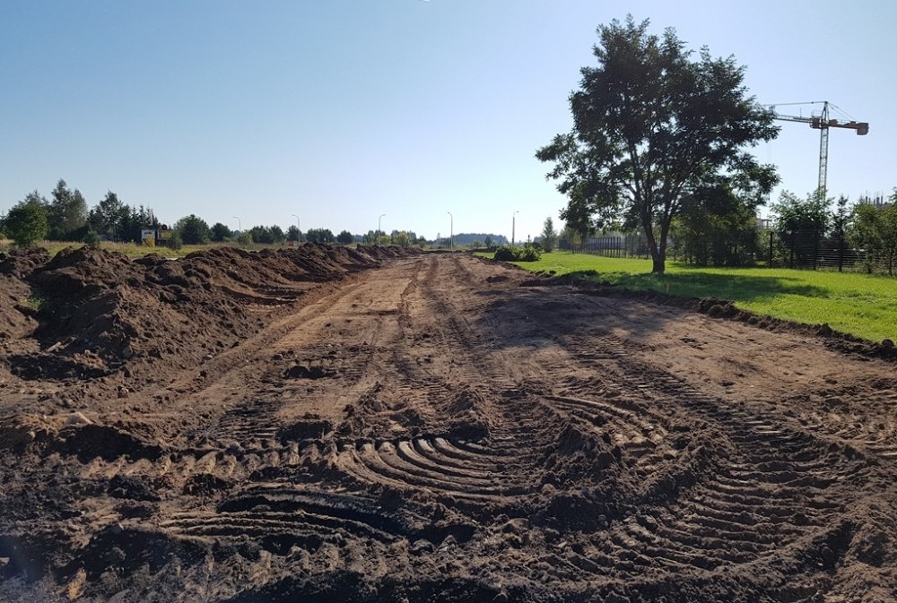 Geodeci wytyczyli już przebieg przyszÅ‚ej ulicy, dlatego można byÅ‚o rozpocząć prace ziemne. WyciÄ™to kolidujÄ…ce drzewa, koparki zaÅ› rozpoczęły zdejmowanie humusu czyli wierzchnich warstw gruntu. Wkrótce rozpocznÄ… siÄ™ głębsze wykopy.