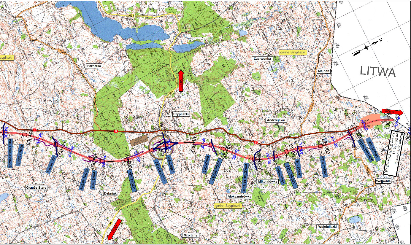 Dokładnie, odcinek będzie miał 24,157 km długości, dwie jezdnie po dwa pasy ruchu z nawierzchnią z betonu cementowego. Powstaną dwa węzły: Suwałki Północ i Szypliszki oraz dwa Miejsca Obsługi Podróznych kategorii I: Budzisko Wschód i Budzisko Zachód. Budowa odcinka wartego ponad miliard zlotych jest dofinansowana z unijnego programu Łącząc Europę (ang. Connecting Europe Facility – CEF).