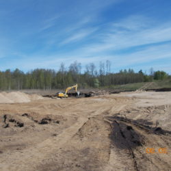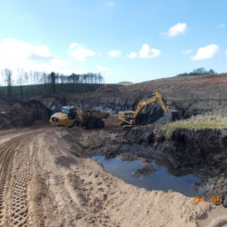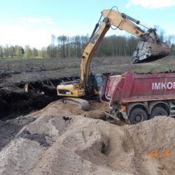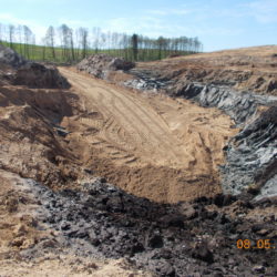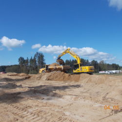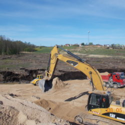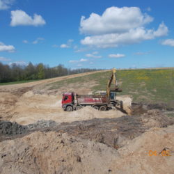 W ciągu trzech miesięcy po przejęciu placu budowy zakończona została niezbędna wycinka drzew, trwa odhumusowanie, rozbiórka budynków i budowa dróg technologicznych.
