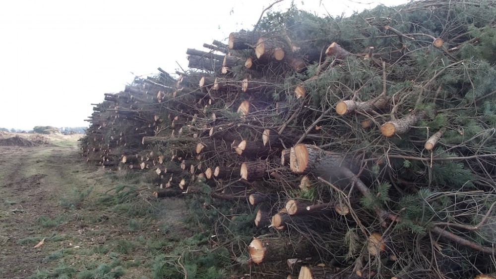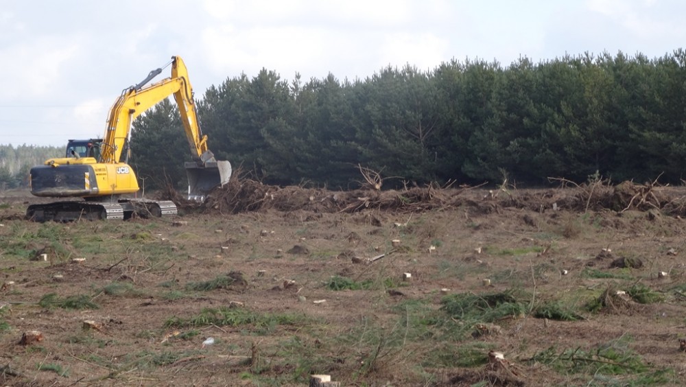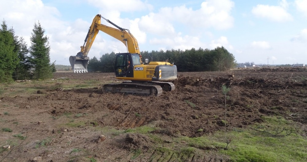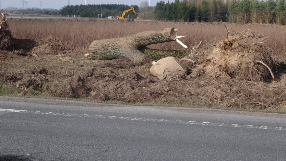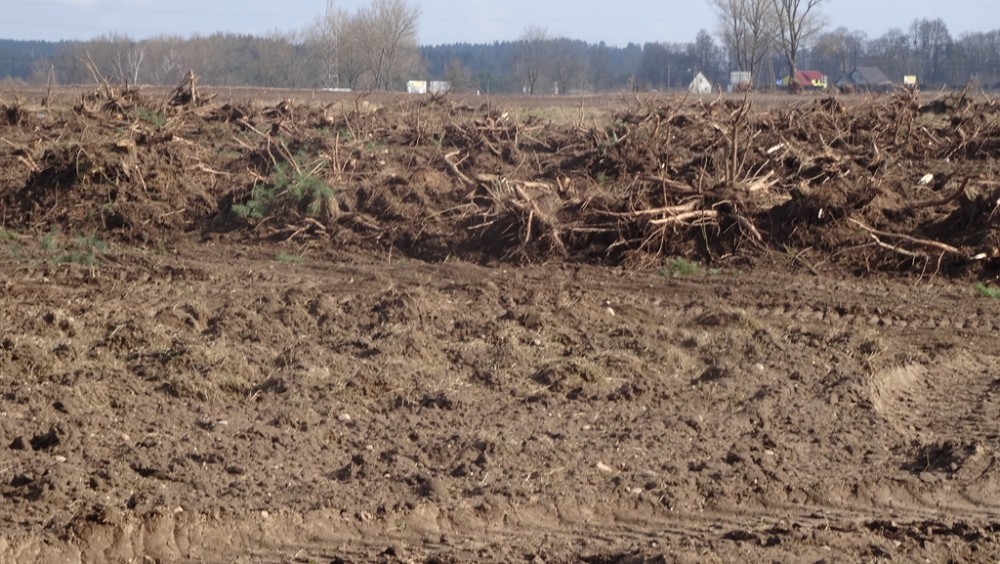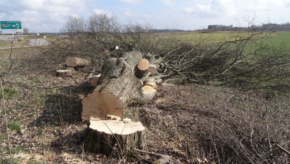 Najpierw wywieziono drewno, a od piątku trwa karczowanie m.in. poboczy oraz działki leśnej od strony ostatniego wiaduktu w Suwałkach i biegnącej obok drogi serwisowej suwalskiej obwodnicy.