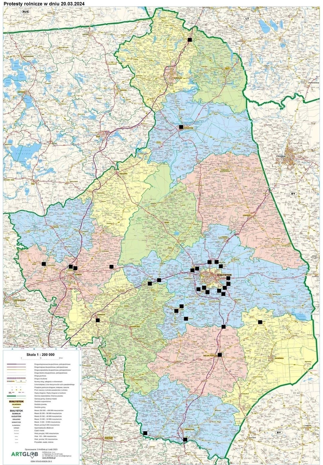 Blokady rolnicze w woj podlaskim w dniu 20 marca 2024 roku
