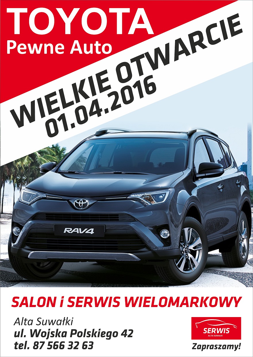 Uwaga, to nie będzie Prima Aprilis! Już w piątek, 1 kwietnia w Suwałkach odbędzie się Wielkie Otwarcie Salonu Toyoty.