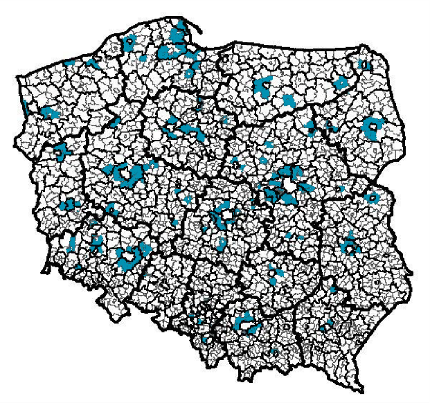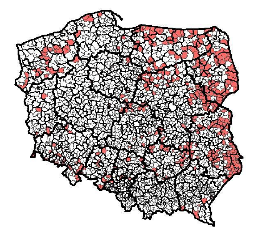 WiÄ™kszość gmin, które odnotowaÅ‚y duży spadek liczby ludnoÅ›ci (powyżej 10%) znajduje siÄ™ na terenach tzw. „Å›ciany wschodniej”. Szczególna koncentracja tego typu gmin ma miejsce w województwie podlaskim (stanowiÄ… one blisko poÅ‚owÄ™ gmin - aż 48% w województwie), w poÅ‚udniowej części województwa lubelskiego, obszarach przy granicy z RosjÄ…, wschodniej części Pomorza Zachodniego oraz terenach górskich w poÅ‚udniowej części kraju.