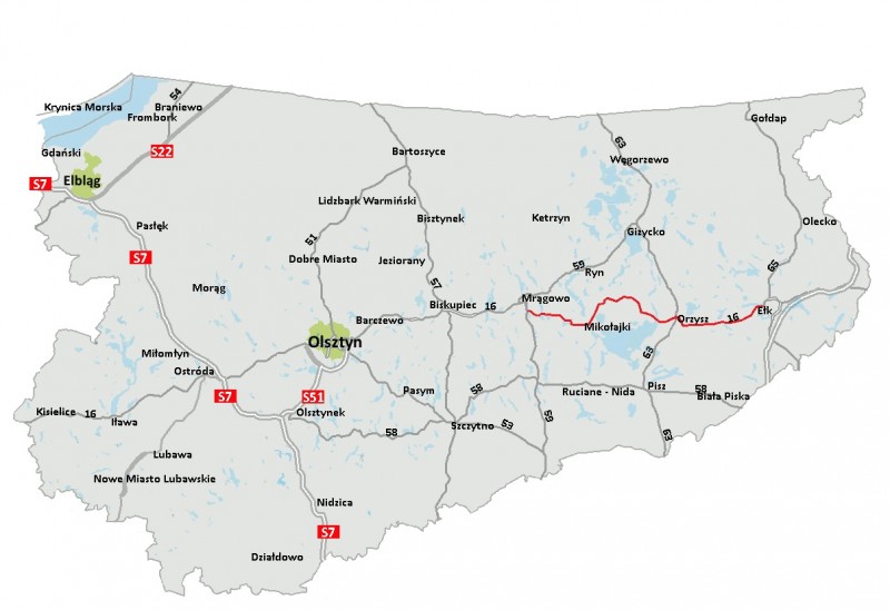 Jak informuje olsztyński oddział generalnej Dyrekcji Dróg Krajowych Autostrad, rozstrzygnięto przetarg na dokumentację projektową drogi ekspresowej S16 na odcinku Ełk- Orzysz- Mrągowo.