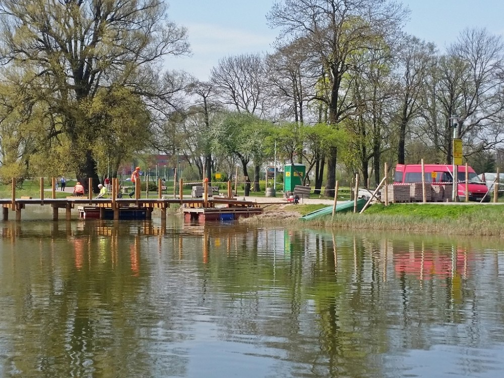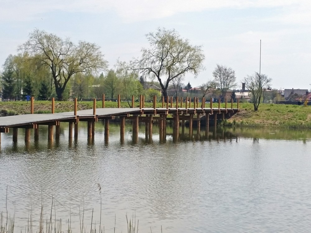 Wzrok suwalczan spacerujÄ…cych nad Zalewem przykuwa natomiast budowana konstrukcja drewnianego pomostu, który poprowadzi na wyspÄ™. Widoczny jest już jego pierwotny zarys. DÅ‚ugi na 80 metrów, który rozciÄ…ga siÄ™ pomiÄ™dzy brzegami, bÄ™dzie miaÅ‚ barierki po obu stronach, w nich zamontowane zostanie oÅ›wietlenie punktowe.