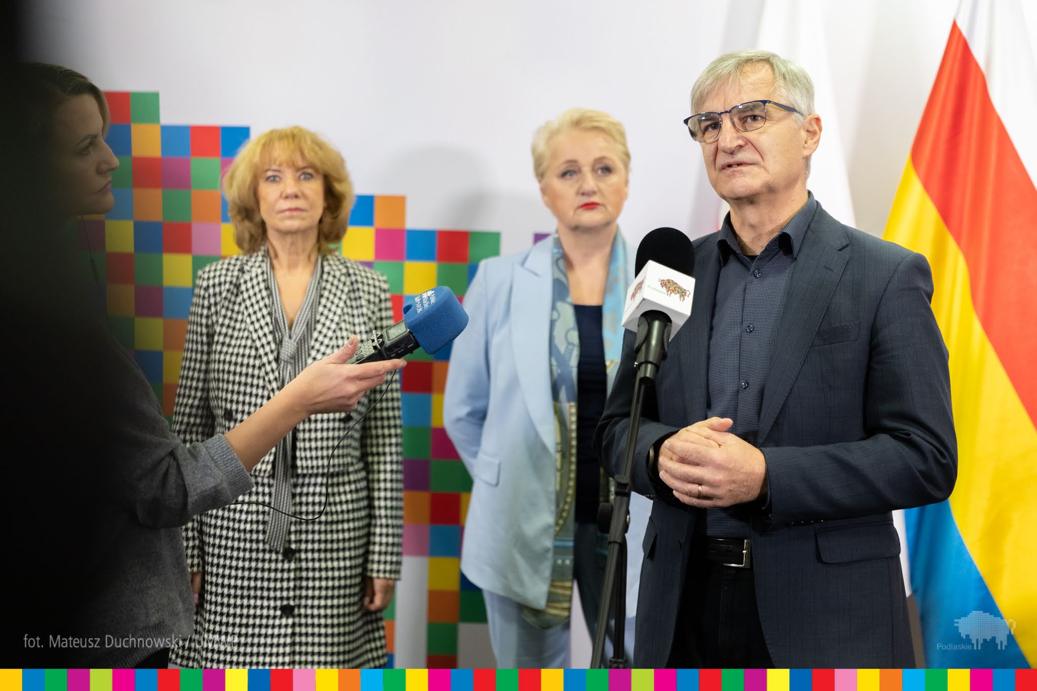 O szczegóÅ‚ach przedsiÄ™wziÄ™cia „Poznajemy Podlaskie” opowiedzieli na czwartkowej (1.12) konferencji czÅ‚onek zarzÄ…du WiesÅ‚awa Burnos, radny wojewódzki i zastÄ™pca przewodniczÄ…cego Rady Ekspertów ds. Turystyki przy Ministerstwie Sportu i Turystyki Bogdan Dyjuk oraz dyrektor Departamentu Edukacji, Sportu i Turystyki i prezes PROT Bożena NienaÅ‚towska.
