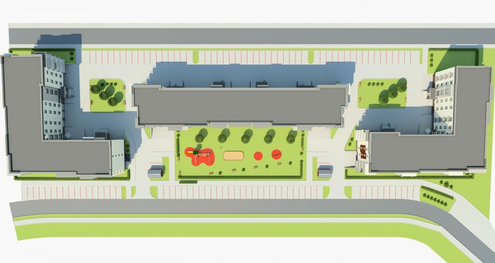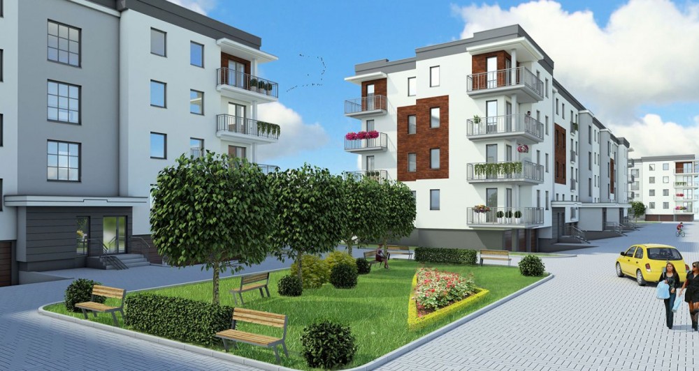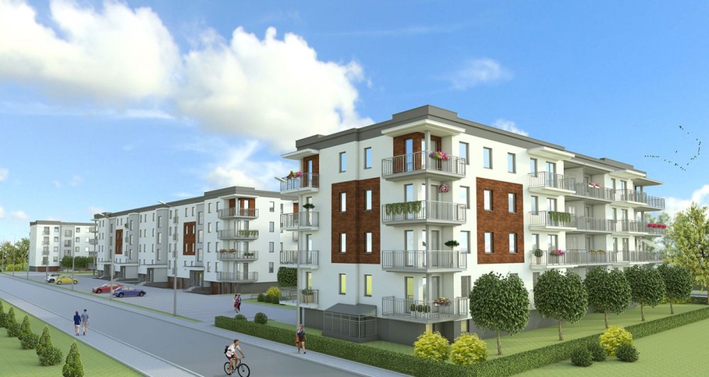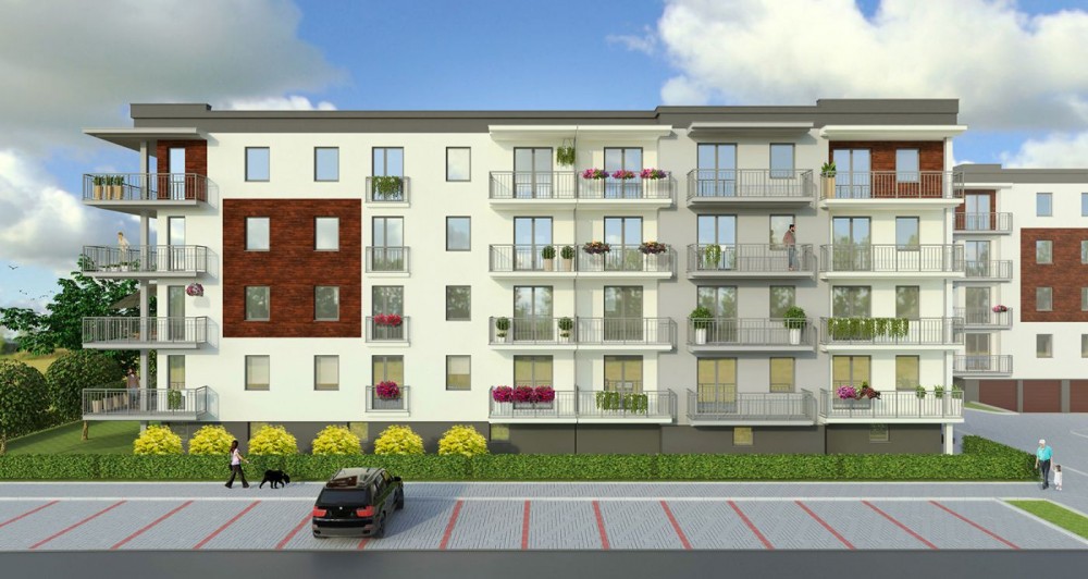 W narożnych blokach bÄ™dzie po 44, a w Å›rodkowym 56 mieszkaÅ„. Ich powierzchnia waha siÄ™ od 33 do 66 metrów. W każdym z budynku bÄ™dÄ… też windy, a na najniższym poziomie budynku umieszczono zewnÄ™trzne garaże.