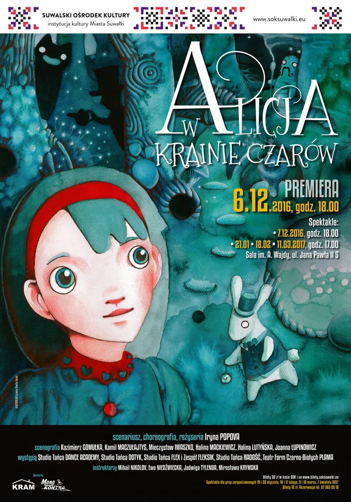 „Alicja w krainie czarów” to kolejny, po sukcesie „Królowej Śniegu”, projekt Suwalskiego Ośrodka Kultury. Barwna baśń o dzielnej dziewczynce, która znalazła w sobie odwagę, aby przeciwstawić się złu i przywrócić światu radość. Przedstawienie zachwyci multimedialną scenografią, fantazyjnymi kostiumami i rekwizytami oraz wyjątkową choreografią i muzyką. Każdy z widzów, który wraz z nami uda się śladem Białego Królika i Alicji, niezależnie od wieku odkryje czarowną magię opowieści.