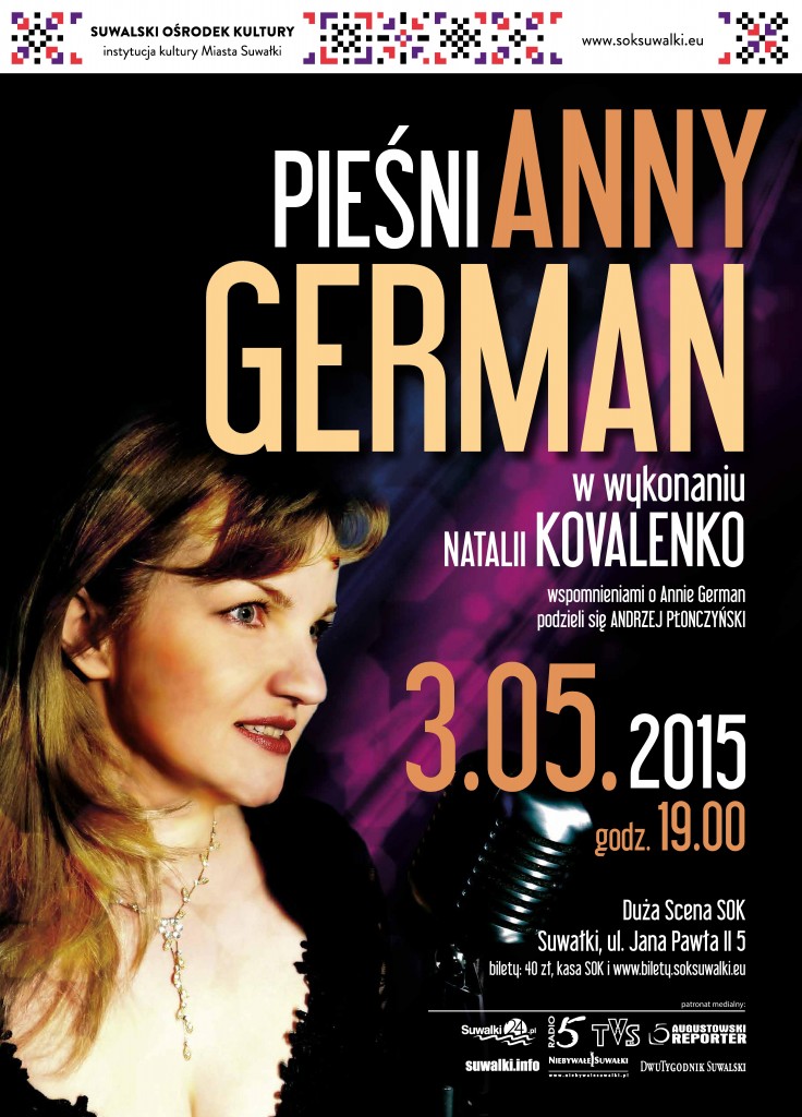 Niezwykły koncert, w którym oprócz pięknych piosenek w wykonaniu Natalii Kovalenko, fenomenalnej sopranistki, posłuchamy ciekawych wspomnień i anegdot o współpracy z Anną German od świadka historii – Andrzeja Płonczyńskiego, legendarnego polskiego akompaniatora i, przede wszystkim, współtwórcy legendy Anny German. Podczas licznych turnee po byłym Związku Radzieckim, które upamiętniły Annę German jako ikonę rosyjskiej popkultury, był nie tylko jej akompaniatorem, ale również doradcą repertuarowym. Towarzyszył Annie German także podczas koncertów w Paryskiej Olimpii, gdzie za jego radą zdecydowała się śpiewać pieśni neapolitańskie i odniosła oszałamiający sukces. Ponadto występowali razem na wielu wspólnych koncertach w Polsce.