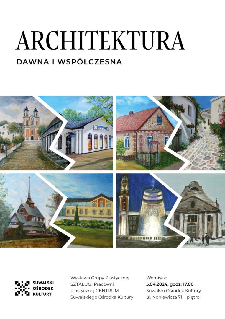 „Architektura dawna i współczesna” to tytuł kolejnej, nowej wystawy malarstwa Grupy Plastycznej Sztalugi działającej w Suwalskim Ośrodku Kultury w Pracowni Plastycznej Centrum. Na wystawie zaprezentowanych jest kilkadziesiąt obrazów przedstawiających zmieniającą się na przestrzeni lat architekturę miast i wsi.