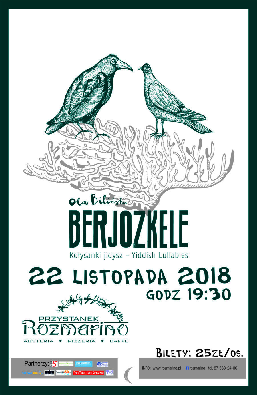 Na koncercie w Rozmarino, wyjątkowo, Ola Bilińska poszerzy program przedwojennych pieśni jidysz z albumu „Berjozkele” o parę nieśmiertelnych szlagierów przedwojennej polskiej piosenki. Jakich – niech to pozostanie niespodzianką wieczoru.