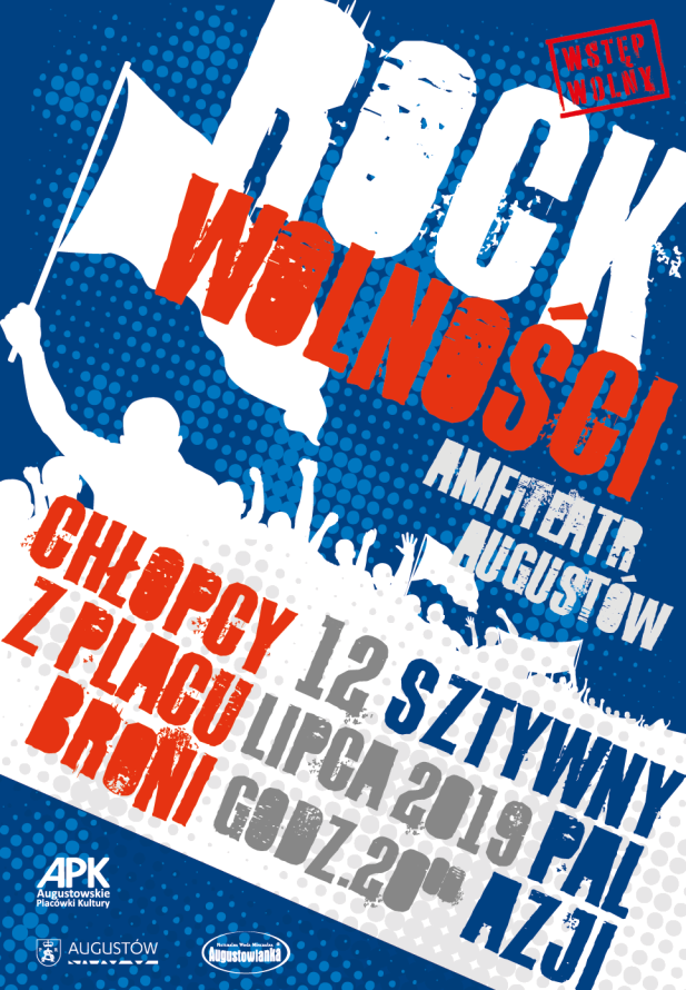 Augustowskie Placówki Kultury serdecznie zapraszają w piątek, 12 lipca o godz. 20:00, do amfiteatru nad Neckiem na koncert pod hasłem ROCK WOLNOŚCI. Na scenie staną przed Państwem legendy polskiego rocka – Chłopcy z Placu Broni i Sztywny Pal Azji.