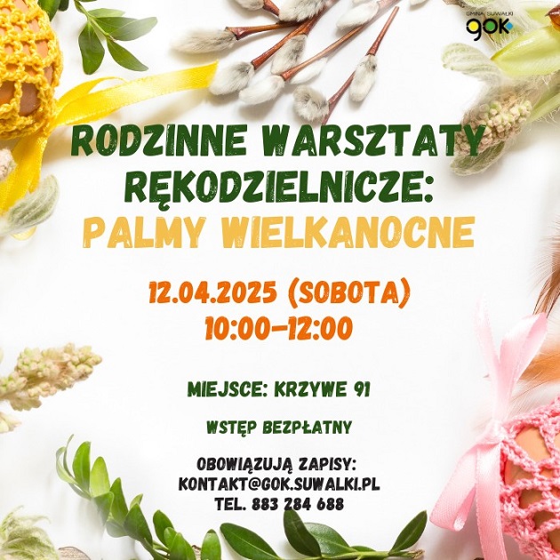 Na rodzinne warsztaty tworzenia palm wielkanocnych zaprasza Ośrodek Czytelnictwa i Kultury Gminy Suwałki.