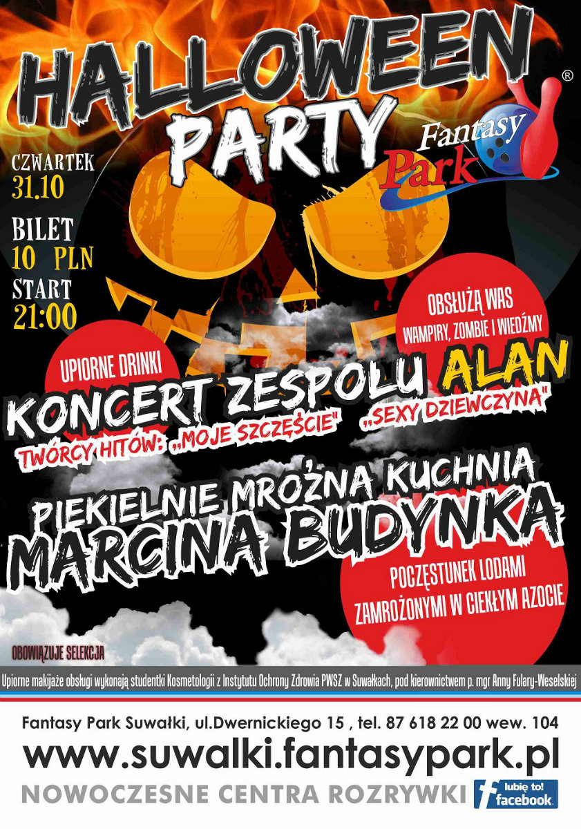 ObsÅ‚użą Was wampiry, zombie i wiedźmy.Upiorne makijaże obsÅ‚ugi wykonajÄ… studentki Kosmetologii z Instytutu Ochrony Zdrowia PWSZ w SuwaÅ‚kach, pod kierownictwem p. mgr Anny Fulary-Weselskiej”