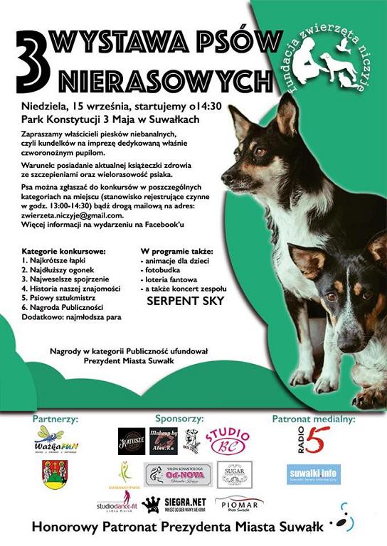 Fundacja Zwierzęta Niczyje w Suwałkach zaprasza na III Wystawę Psów Nierasowych.