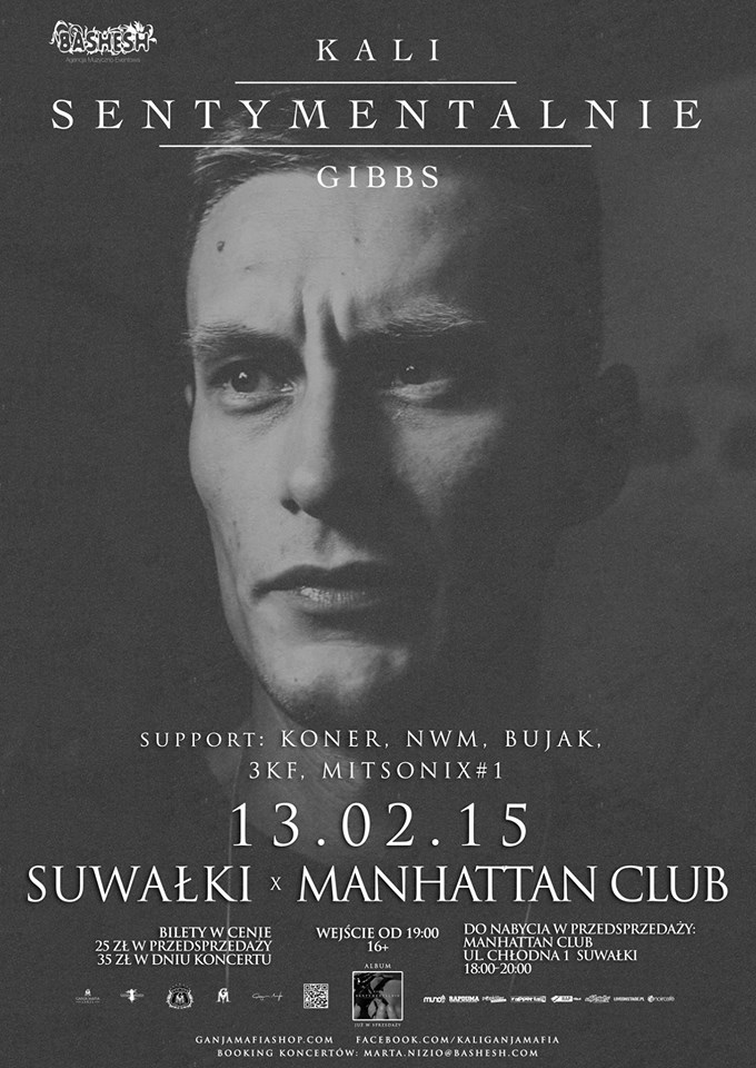 13 lutego w Manhattan Club przy ul. Chłodnej w Suwałkach wystąpi raper Kali Gibbs. Będzie promował swój ostatni album pt. „Sentymentalnie”.