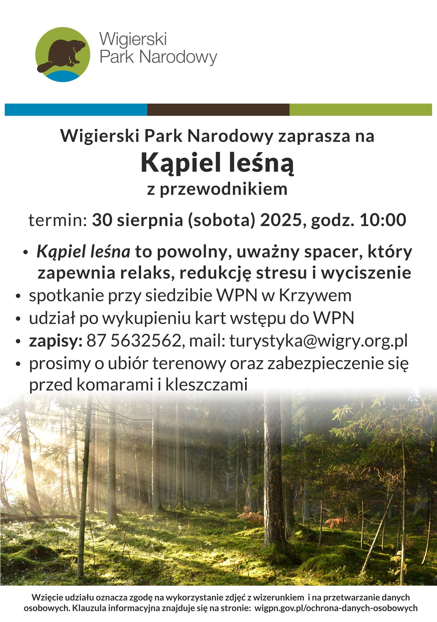 • liczba miejsc ograniczona, prosimy o wczeÅ›niejsze zapisy tel. 87 563 25 62, mail: turystyka@wigry.org.pl
