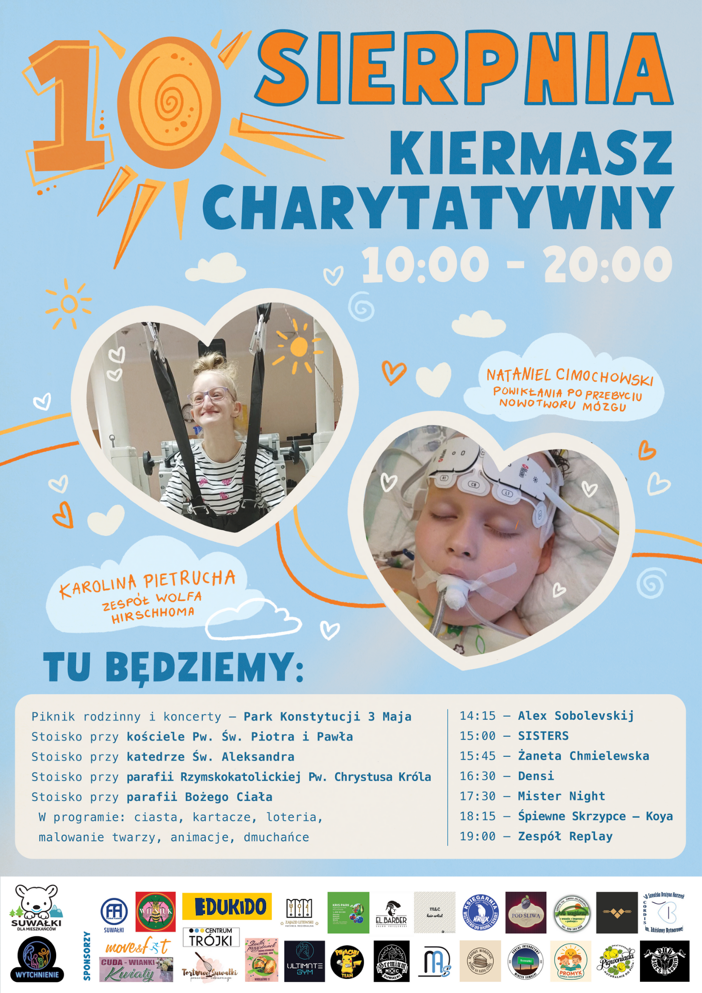 Stowarzyszenie Suwałki dla Mieszkańców, Izabela Biel i Stowarzyszenie Wytchnienie serdecznie zapraszają na wyjątkowe wydarzenie pełne dobra, smaku i muzyki! W niedzielę, 10 sierpnia, w Parku Konstytucji 3 Maja w Suwałkach, w godzinach: 10.00-20.00, odbędzie się kiermasz charytatywny.