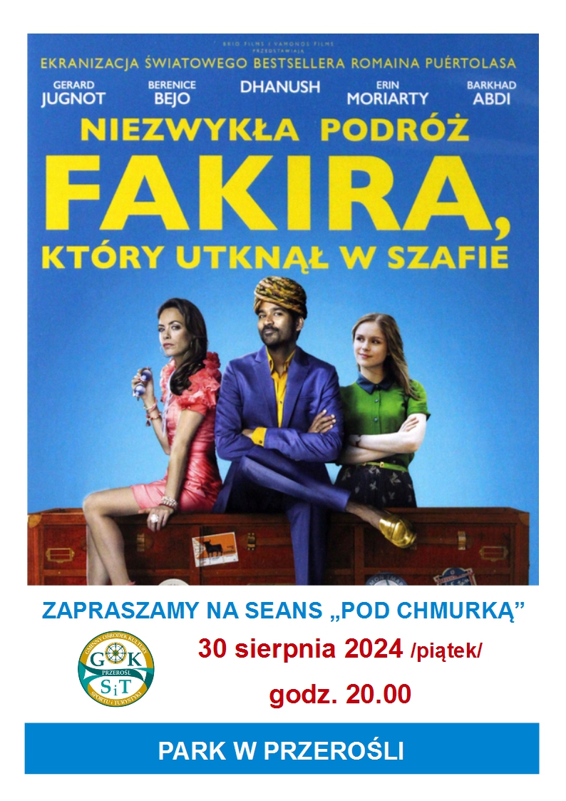 W piÄ…tek, 30 sierpnia, w parku w PrzeroÅ›li wyÅ›wietlony zostanie film "NiezwykÅ‚a podróż fakira, który utknÄ…Å‚ w szafie".