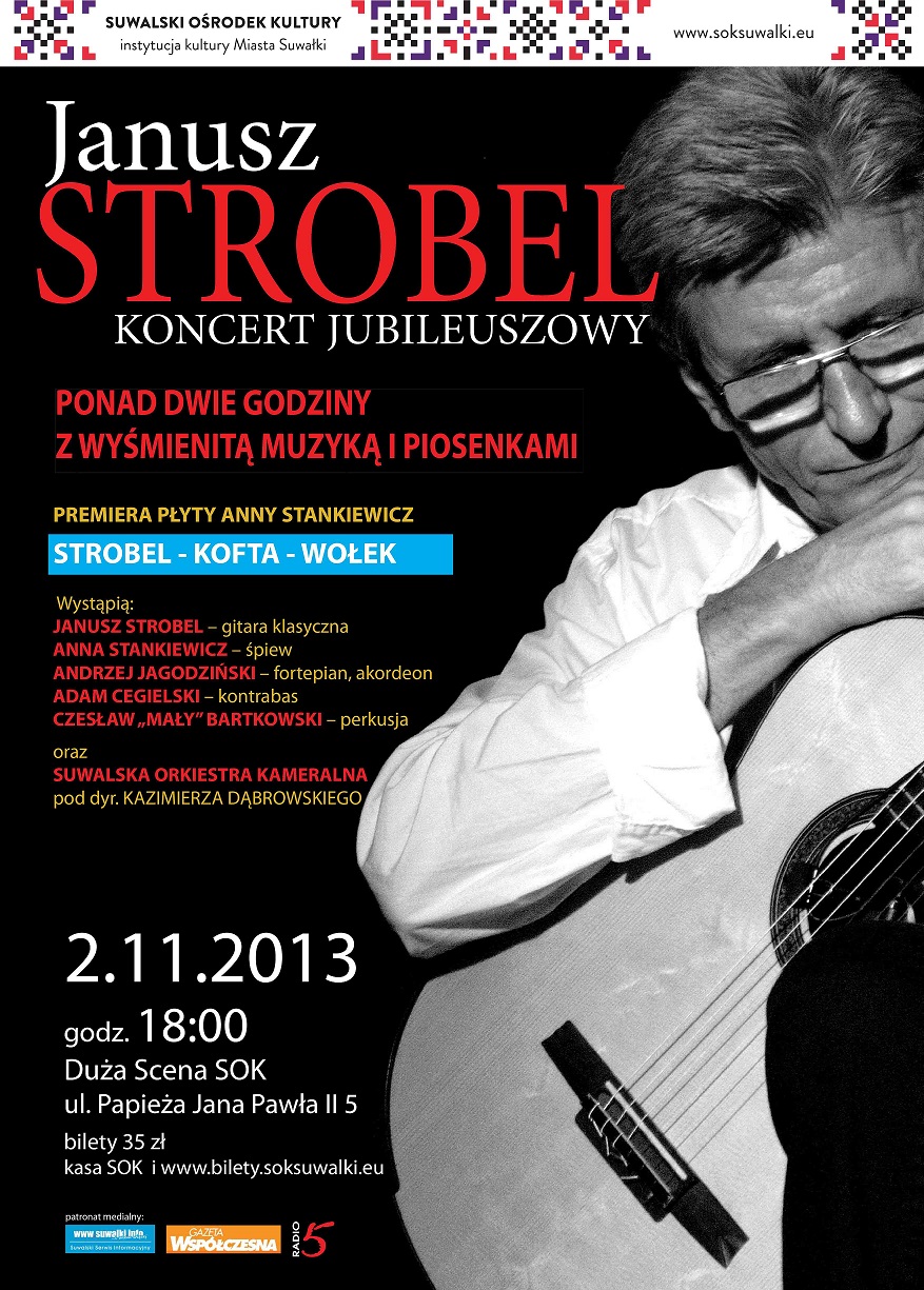Janusz Strobel - Jeden z najwybitniejszych polskich wirtuozów gitary klasycznej, kompozytor, aranżer odznaczony medalem Gloria Artis. Działalność kompozytorska Janusza Strobla poza muzyką dla potrzeb filmu, teatru czy piosenkami do tekstów Magdy Czapińskiej, Jonasza Kofty, Jana Wołka, Wojciecha Młynarskiego, obejmuje głównie tworzenie muzyki na gitarę klasyczną solo i z towarzyszeniem orkiestry symfonicznej.Jako aranżer stworzył płyty takim artystom jak Jacek Kaczmarski („Między nami”), Anna Serafińska, Hanna Banaszak, Elżbieta Adamiak, Aneta Łastik, Łucja Prus, Irena Santor, Ewa Bem czy Edyta Geppert.