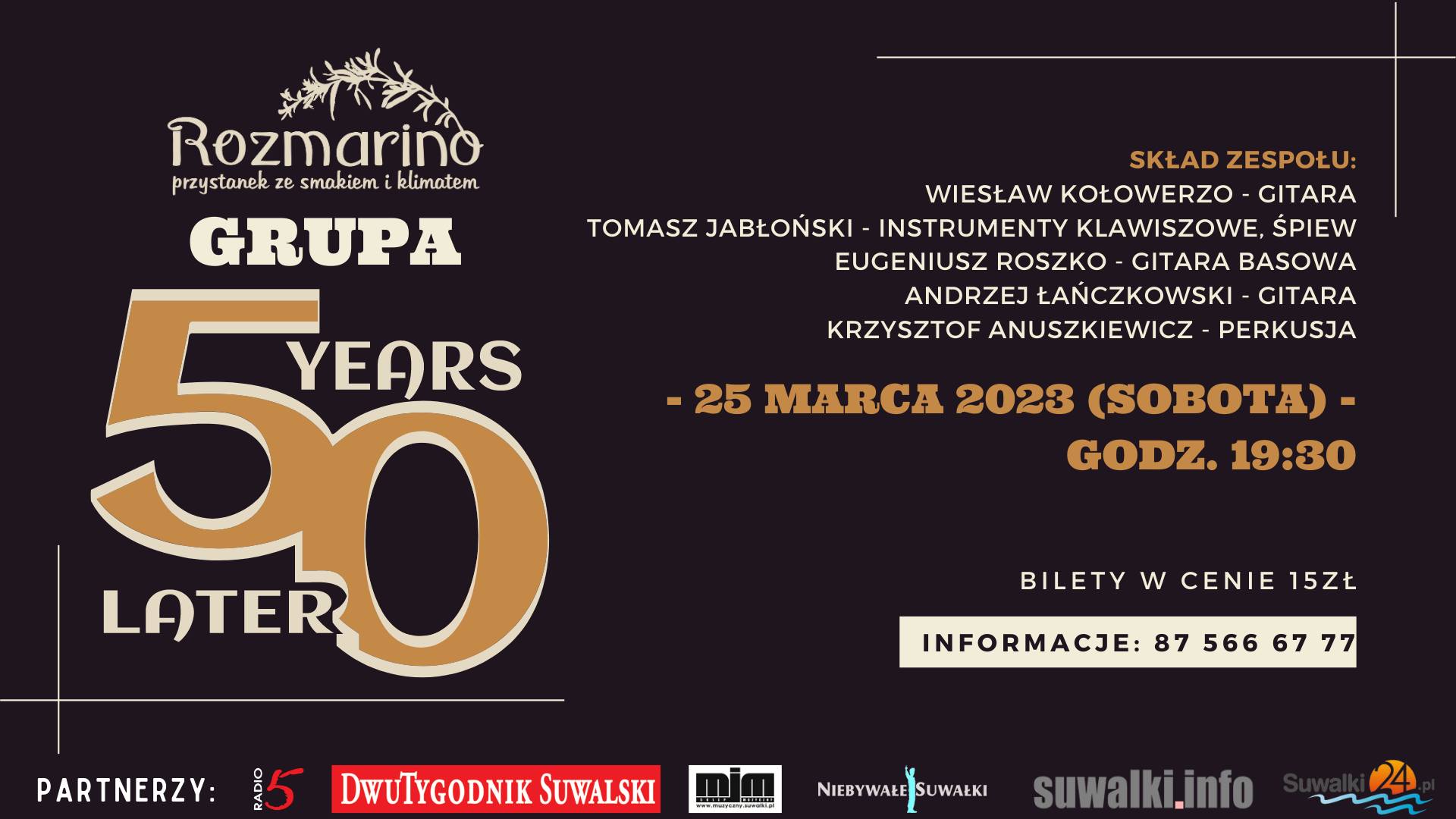 W sobotę, 25 marca, zapraszamy na premierowy koncert suwalskiej grupy 50 YEARS LATER w Rozmarino.