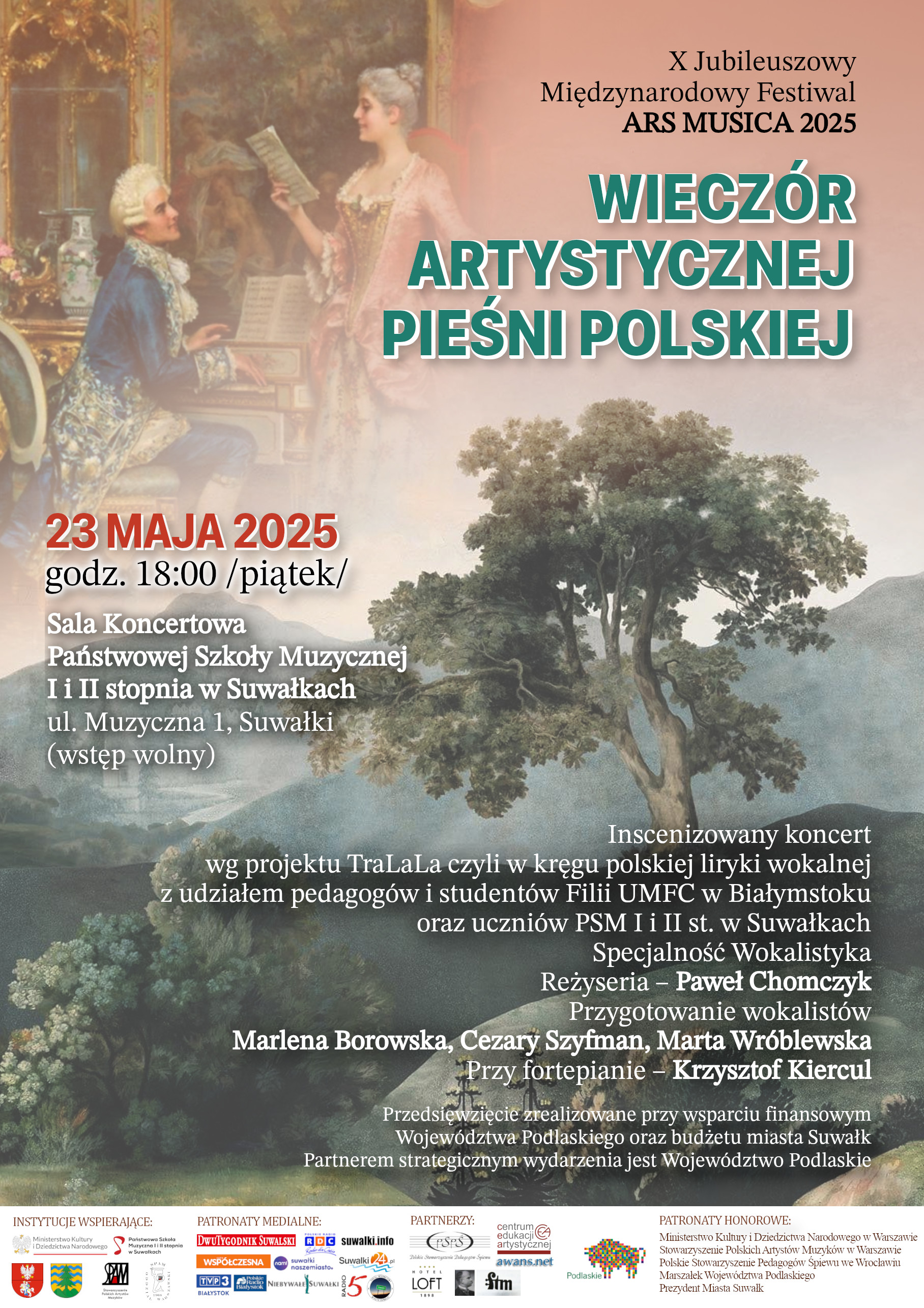 Marlena Borowska, dyrektor X ARS MUSICA 2025 serdecznie zaprasza na ostatnie, majowe wydarzenie edukacyjno-artystyczne, które odbędzie się 23.05.2025 r. (piątek) o godz. 18.00 w Sali Koncerto-wej Państwowej Szkoły Muzycznej I i II stopnia, ul. Muzyczna 1, Suwałki, wstęp wolny.