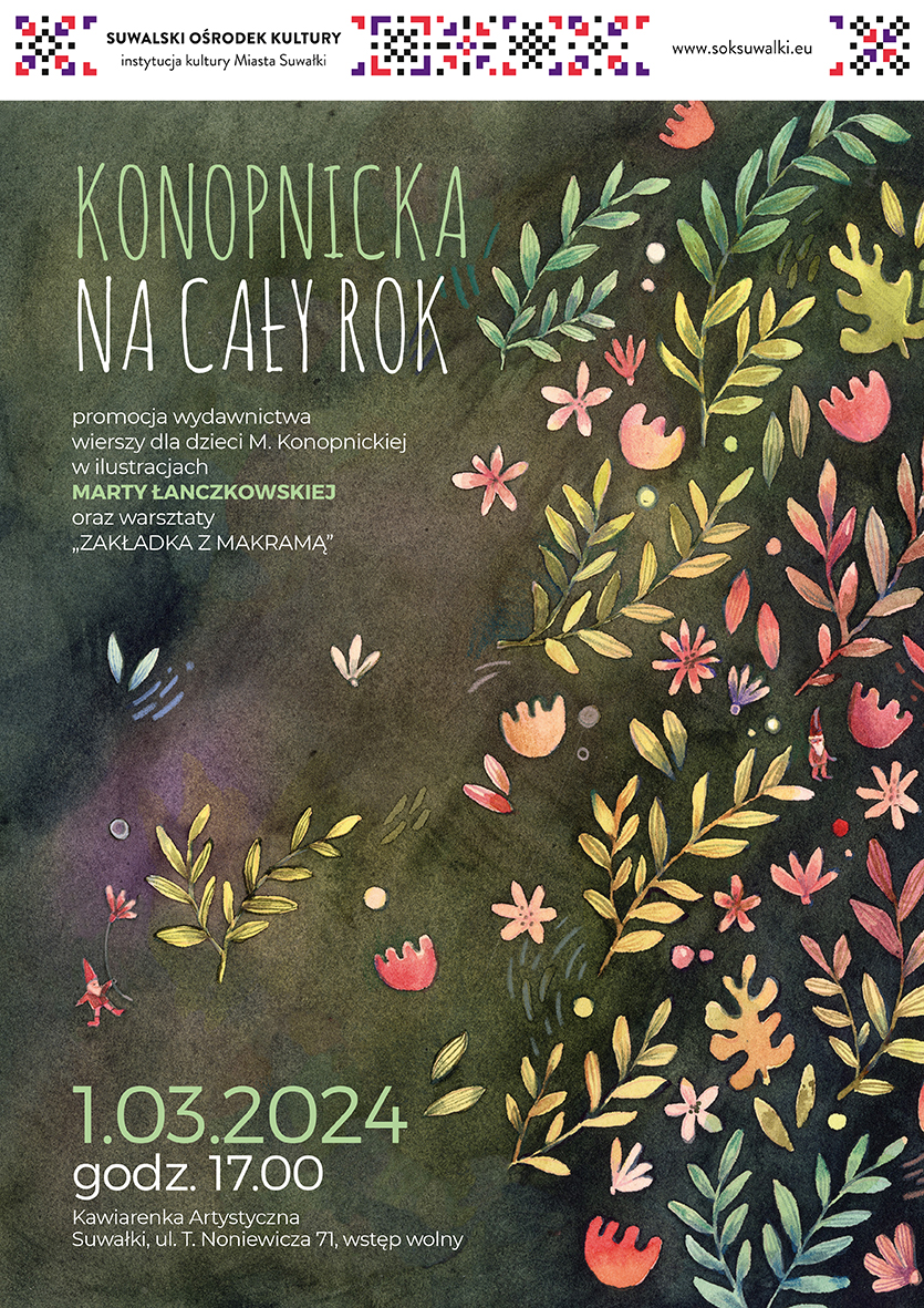 Zapraszamy na spotkanie autorskie z Martą Taraszkiewicz – połączone z darmowymi warsztatami. Konopnicka na cały rok nie jest zwyczajnym tomikiem poezji dla dzieci. W tej książce piękne opisy przyrody zawarte wierszach Konopnickiej i codzienne życie sympatycznej rodziny przedstawionej przez Martę Taraszkiewicz przeplatają się ze sobą tworząc bogatą, obrazkową opowieść, która prowadzi nas przez kolejne pory roku. Poza klasykami takimi jak „Nasza zima zła" czy „Niezapominajki" znajdziesz w niej też mniej popularne utwory wpisujące się w tematykę rozkwitającej wiosny, słonecznego lata, płodnej w dary jesieni czy mroźnej zimy.