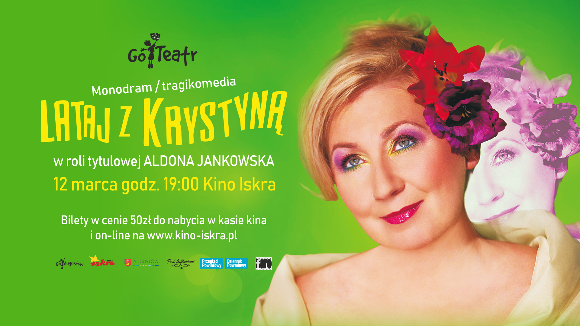 12 marca o godz. 19.00 zapraszamy Państwa do kina Iskra w Augustowie na spektakl znakomitego warszawskiego Teatru Kwadrat „Lataj z Krystyną”.