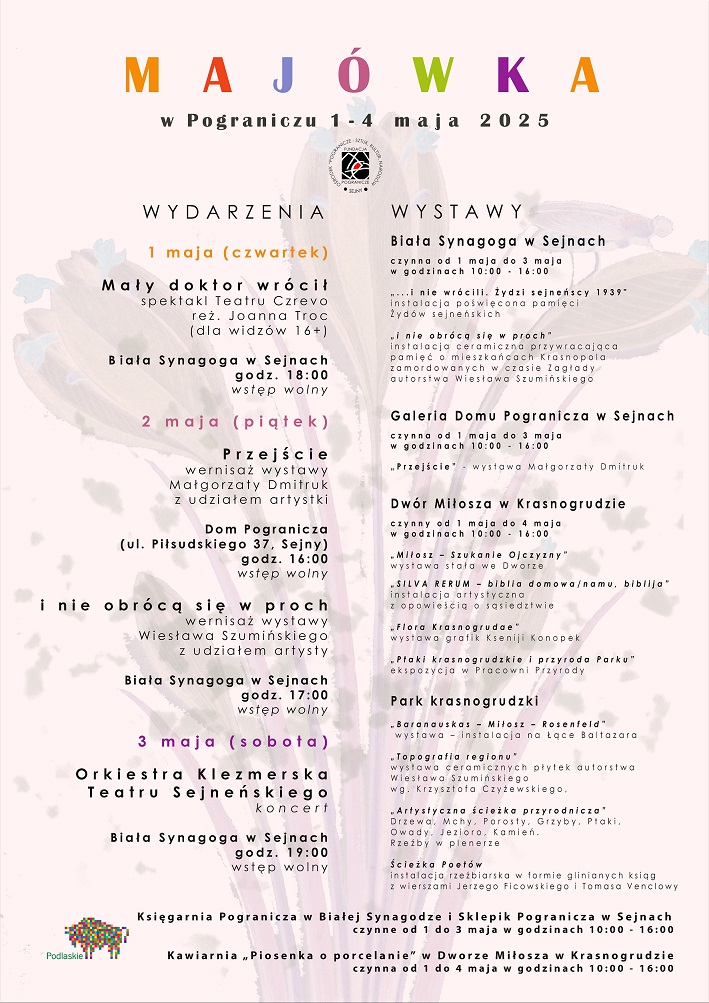 Sklepik Pogranicza w Sejnach, Galeria Domu Pogranicza i Biała Synagoga otwarte od 1 do 3 maja w godzinach 10-16