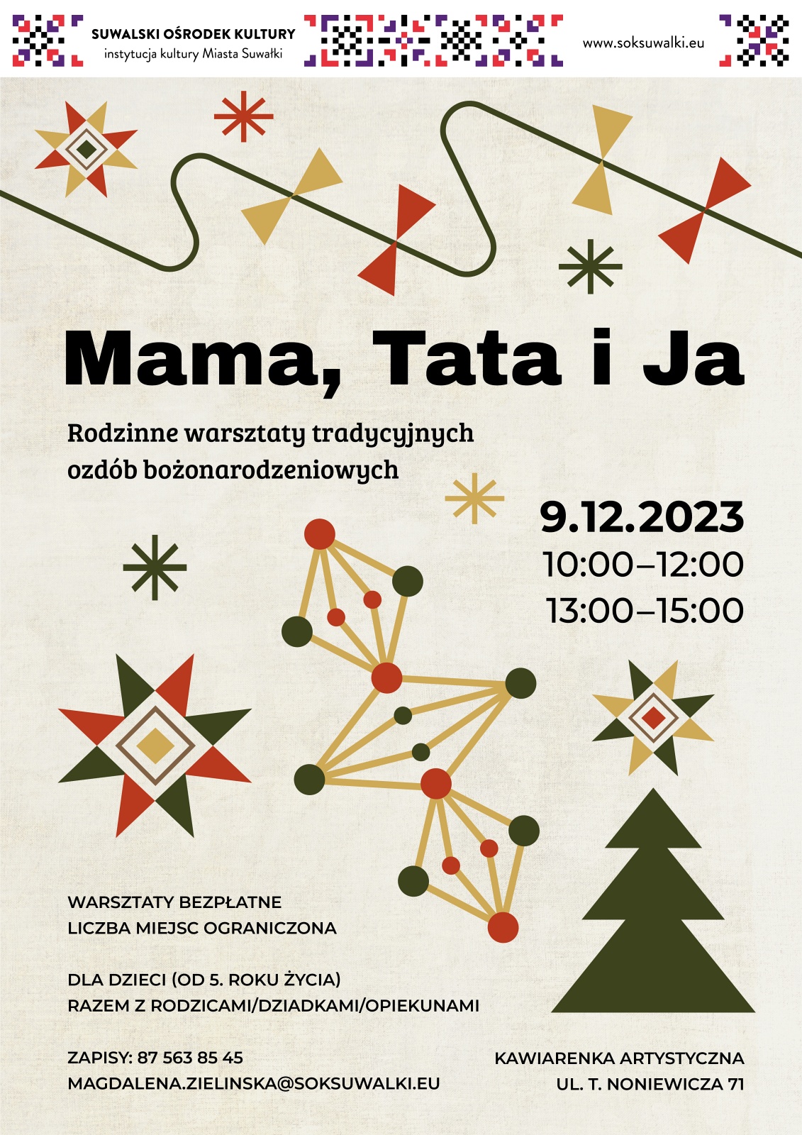 Już niedługo do naszych domów zawitają choinki, podłaźniczki i stroiki. A na zielonych gałązkach pojawią się ozdoby świąteczne. Zachęcamy do udekorowania ich tradycyjnymi ozdobami świątecznymi, ręcznie wykonanymi, niepowtarzalnymi i niosącymi głębsze przesłanie. Właśnie takie wykonamy wspólnie podczas grudniowych warsztatów Mama, Tata i Ja.