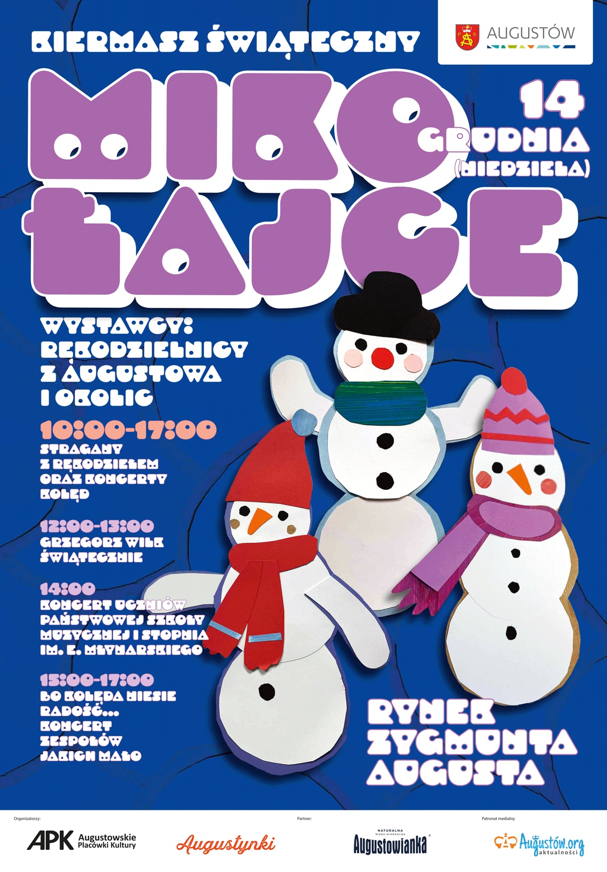 Augustowskie Placówki Kultury zapraszają na Mikołajce, czyli świąteczny kiermasz rękodzieła. Przed nami impreza, która wprowadza w świąteczny nastrój i sprawia, że odliczanie dni do wigilii Bożego Narodzenia nabiera prawdziwie magicznego charakteru.