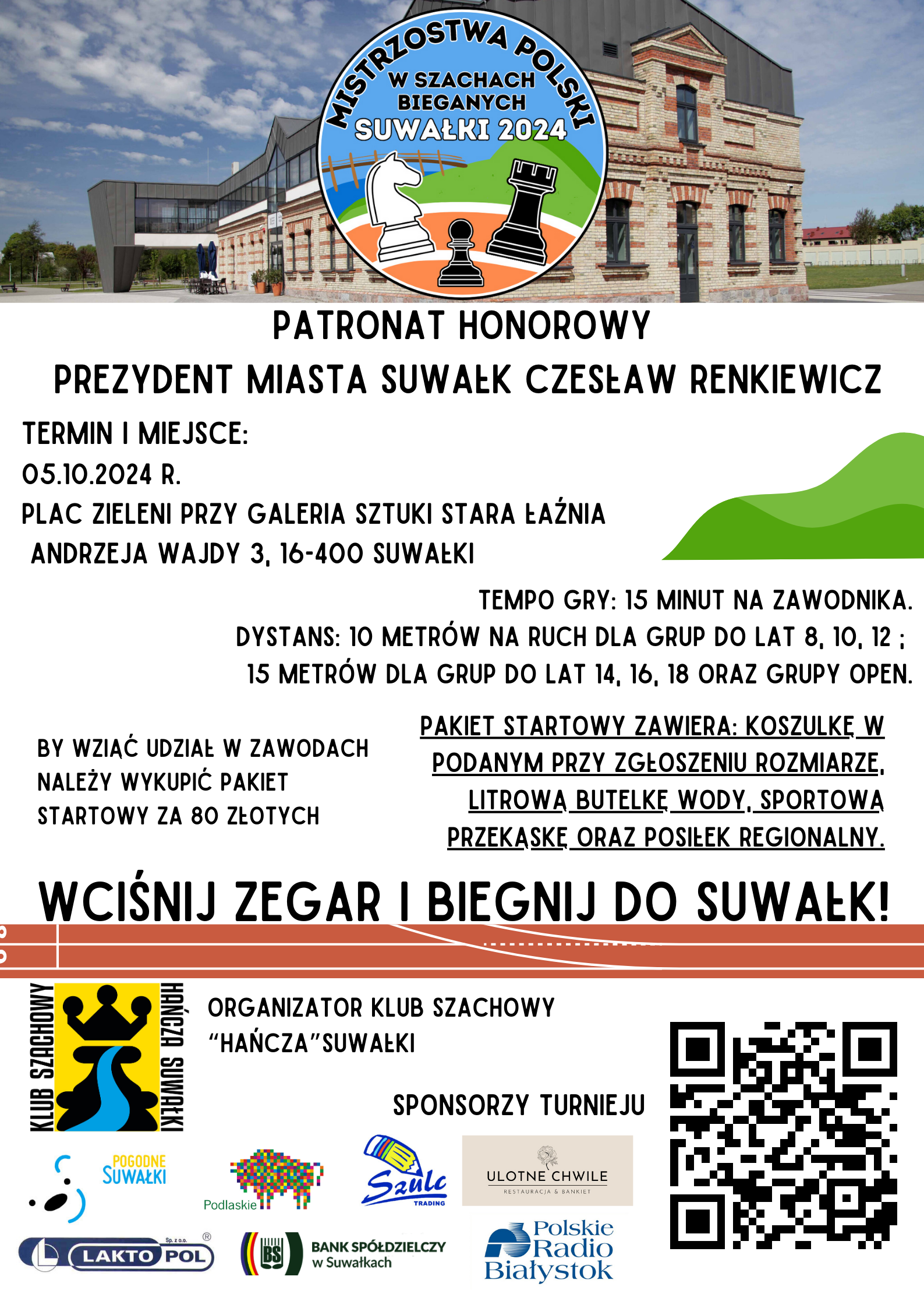 Klub Szachowy Hańcza Suwałki zaprasza Suwalczan na pierwszą tego typu imprezę w Polsce - Mistrzostwa Polski w Szachach Bieganych. Jest to bardzo widowiskowa odmiana szachów!