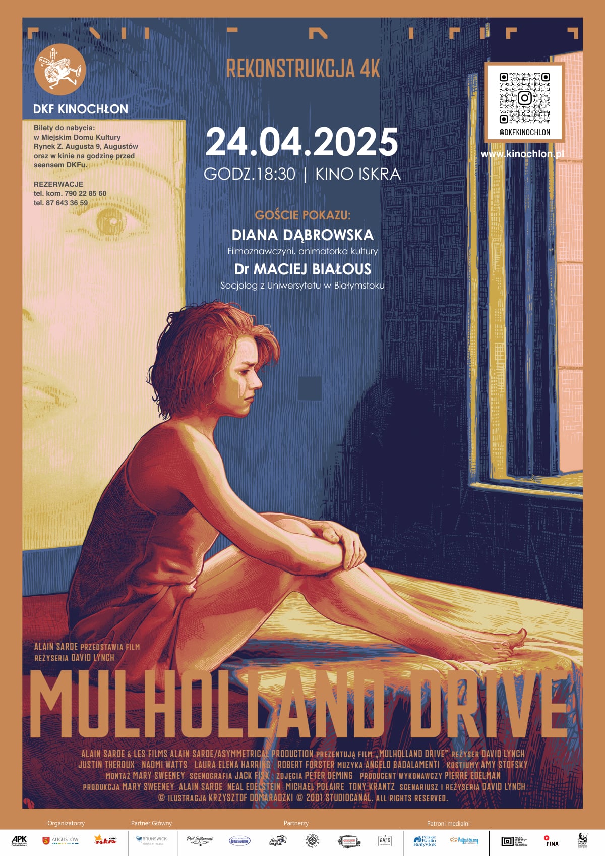 Przed nami wieczór z uwodzicielską i przerażającą wizją fabryki snów w Los Angeles Davida Lyncha – opowieścią o miłości, zazdrości i zemście jak żadna inna. To co zobaczymy na ekranie przedyskutują z nami dobrze znani kinochłonowej widowni goście – Diana Dąbrowska, filmoznawczyni, animatorka kultury, absolwentka studiów kulturoznawczych na Wydziale Filologicznym Uniwersytetu Łódzkiego i Maciej Białous, Pracownik Instytutu Socjologii Uniwersytetu w Białymstoku, wolontariusz Fundacji UwB.