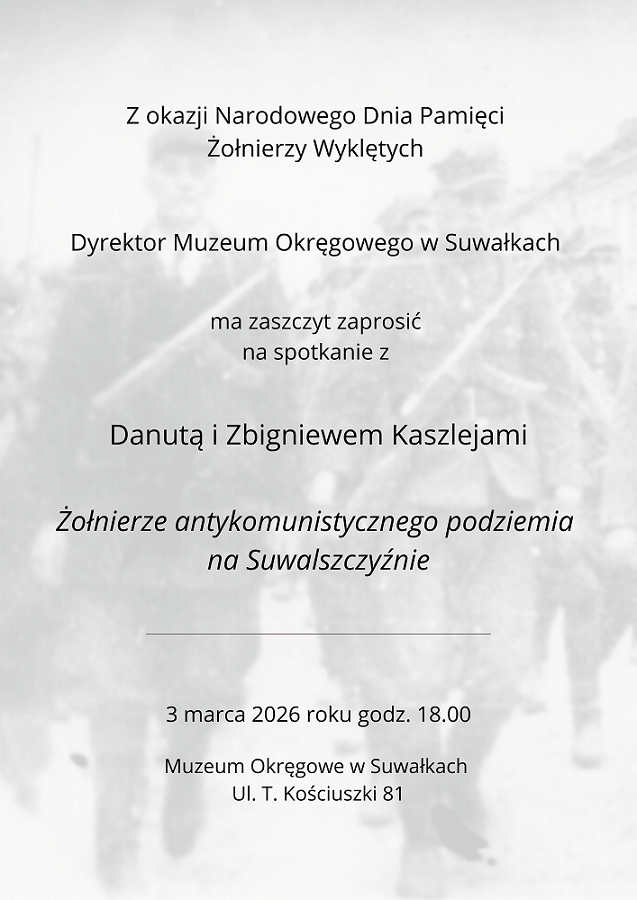 Muzeum Okręgowe w Suwałkach serdecznie zaprasza na spotkanie z Danutą i Zbigniewem Kaszlejami z okazji obchodów Dnia Żołnierzy Wyklętych.