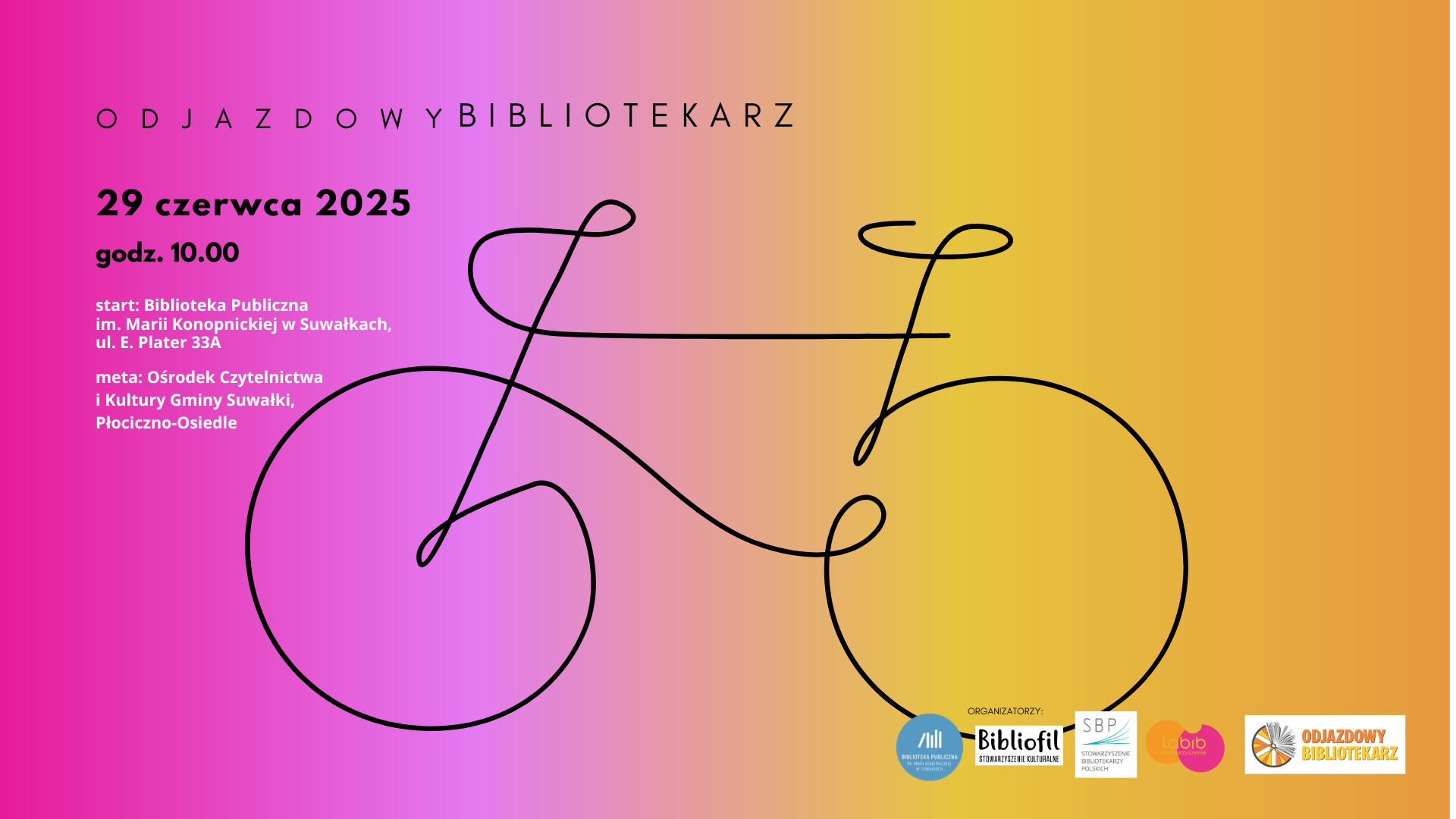 Biblioteka Publiczna im. Marii Konopnickiej zaprasza miłośników rowerów i książek na czternasty rajd „Odjazdowy bibliotekarz”. Start w niedzielę, 29 czerwca 2025 r., godz. 10.00 przy budynku Biblioteki, ul. E. Plater 33A.