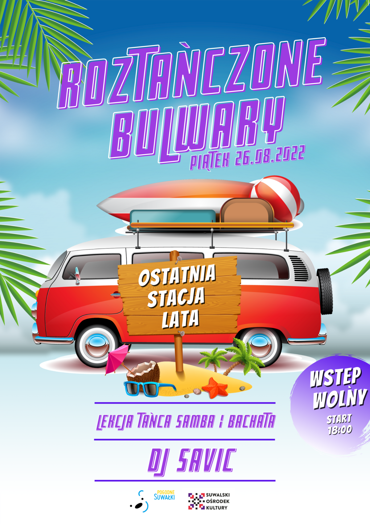 „RoztaÅ„czone Bulwary: Ostatnia Stacja Lata” to taneczne zakoÅ„czenie wakacji. Plan jest prosty: piÄ…tkowy wieczór, suwalskie bulwary, najlepsze taneczne kawaÅ‚ki (o które zadba DJ SAVIC). Wskakujemy w ulubione trampki i pÄ™dzimy nad CzarnÄ… HaÅ„czÄ™ by oddać siÄ™ wspólnej zabawie. Przed wieczornÄ… imprezÄ… zapraszamy wszystkich na otwarte warsztaty taÅ„ca, na których poznamy tajniki samby i bachaty.