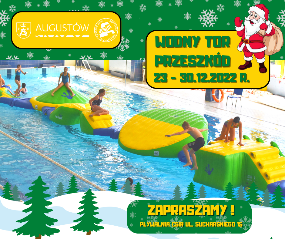 W dniach 23 - 30 grudnia (z wyłączeniem okresu zamkniÄ™cia PÅ‚ywalni 24 - 26 grudnia do godziny 14.00) specjalnie dla wszystkich naszych klientów rozstawiony zostanie wodny tor przeszkód.
