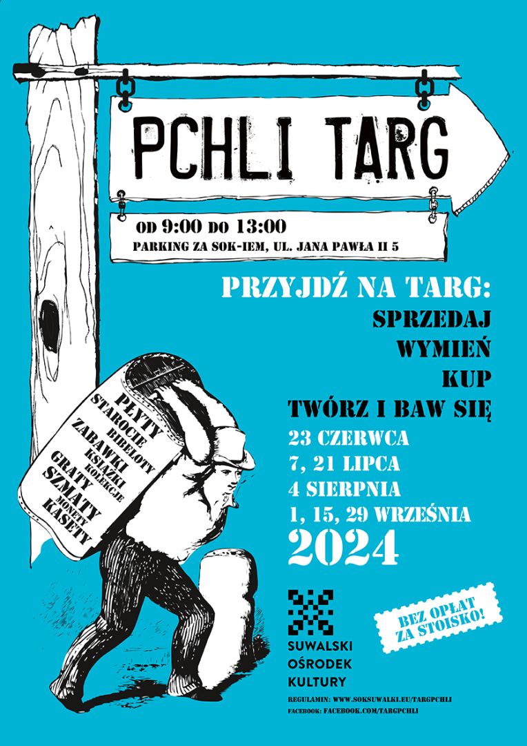 Na potrzeby Pchlego Targu zostanie udostępniona nieodpłatnie przestrzeń za budynkiem SOK od strony zachodniej (parking). Projekt realizowany będzie w od czerwca do września w godzinach 9.00-13.00.