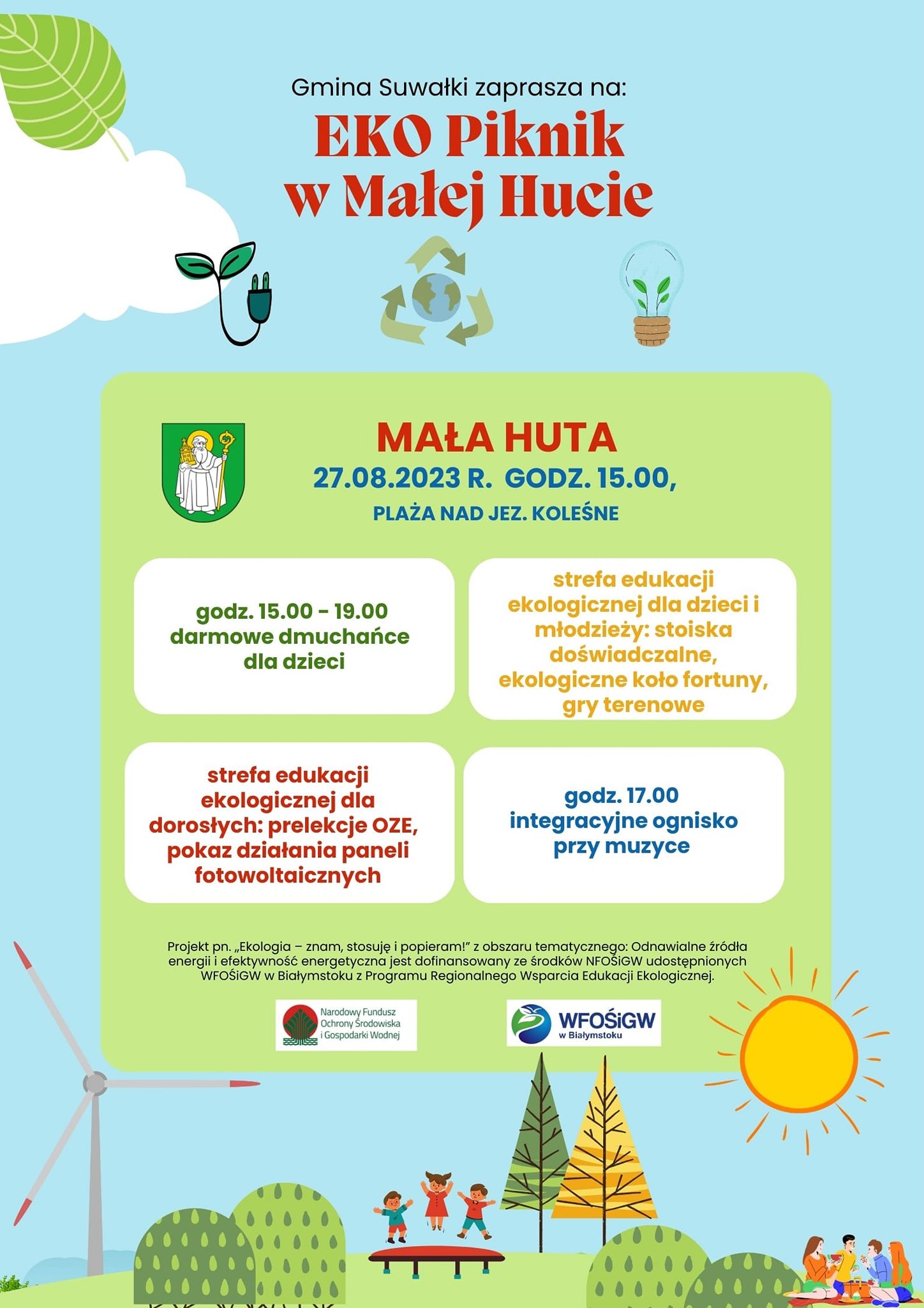 W najbliższą niedzielę (27.08) kolejny Piknik Ekologiczny. Zapraszamy do Małej Huty nad jezioro Koleśne. Początek o 15:00.