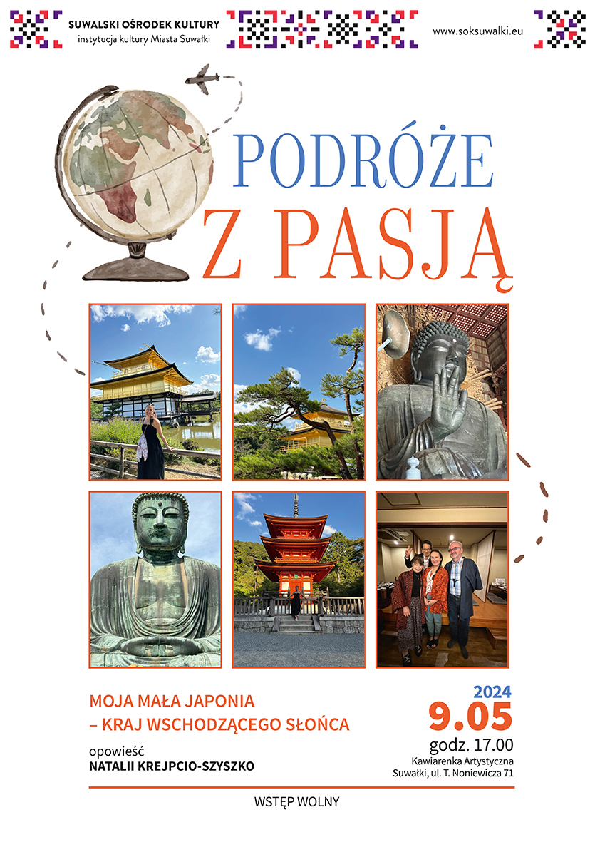 Gościem majowych „Podróży z pasją" będzie Natalia Krejpcio-Szyszko. Zapraszamy do Kawiarenki Artystycznej już 9 maja o godzinie 17.00 na niesamowitą opowieść o Japonii.