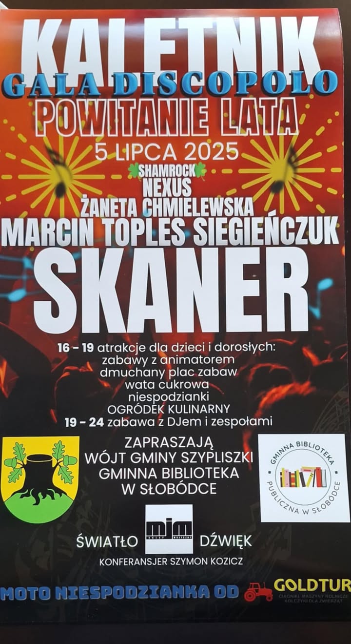 Wójt Gminy Szypliszki oraz Gminna Biblioteka w Słobódce serdecznie zapraszają na Powitanie Lata w Kaletniku.