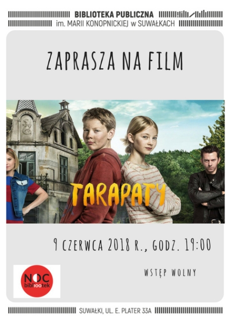 Biblioteka Publiczna im. Marii Konopnickiej w Suwałkach zaprasza na projekcję filmu dla dzieci „Tarapaty” w Pracowni „Smykałka” 9 czerwca o godz. 19:00. Wstęp wolny.