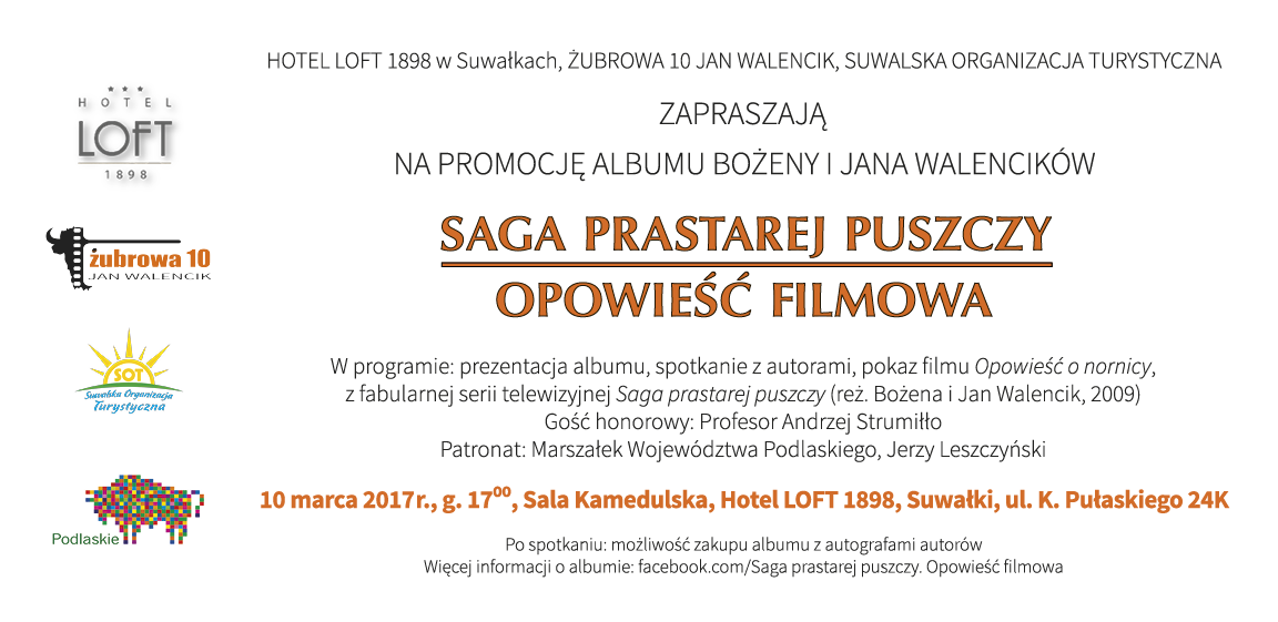 W piątek, 10 marca, w Hotelu Loft odbędzie się promocja nowego albumu Bożeny i Jana Walencików „SAGA PRASTAREJ PUSZCZY. OPOWIEŚĆ FILMOWA”. Gościem honorowym spotkania będzie Profesor Andrzej Strumiłło.