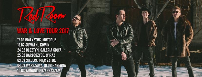 W sobotę, 18 lutego w Black Pubie Komin wystąpi formacja RedRoom. W ramach trasy koncertowej "War & Love TOUR 2017" zespół promować będzie materiał z nowego albumu, którego premiera przewidziana jest na wiosnę.