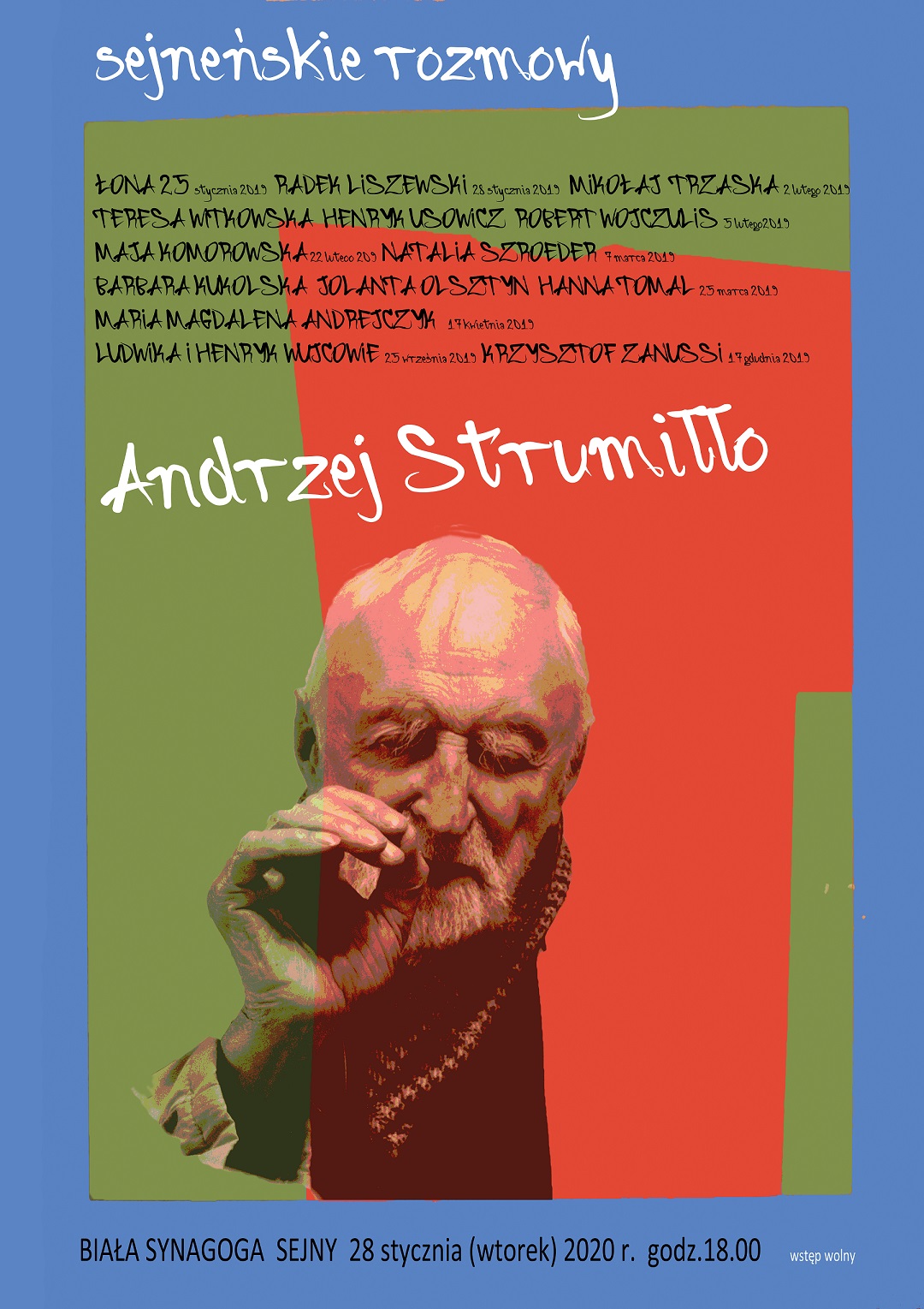 Andrzej Strumiłło - artysta malarz, rysownik, fotografik, rzeźbiarz, grafik, poeta i podróżnik, aktywny działacz na rzecz rozwoju kultury i ochrony krajobrazu północo-wschodniej Polski. Równie ważną pozycję w twórczości artysty zajmuje wystawiennictwo (architektura i grafika wystawiennicza), scenografia telewizyjna i teatralna, grafika projektowa (projektuje książki, katalogi, plakaty), ilustracja książkowa, eseistyka i publicystyka. Andrzej Strumiłło jest także inicjatorem, organizatorem i kuratorem wielu wystaw i plenerów, mieszka i pracuje w Maćkowej Rudzie na Suwalszczyźnie.
