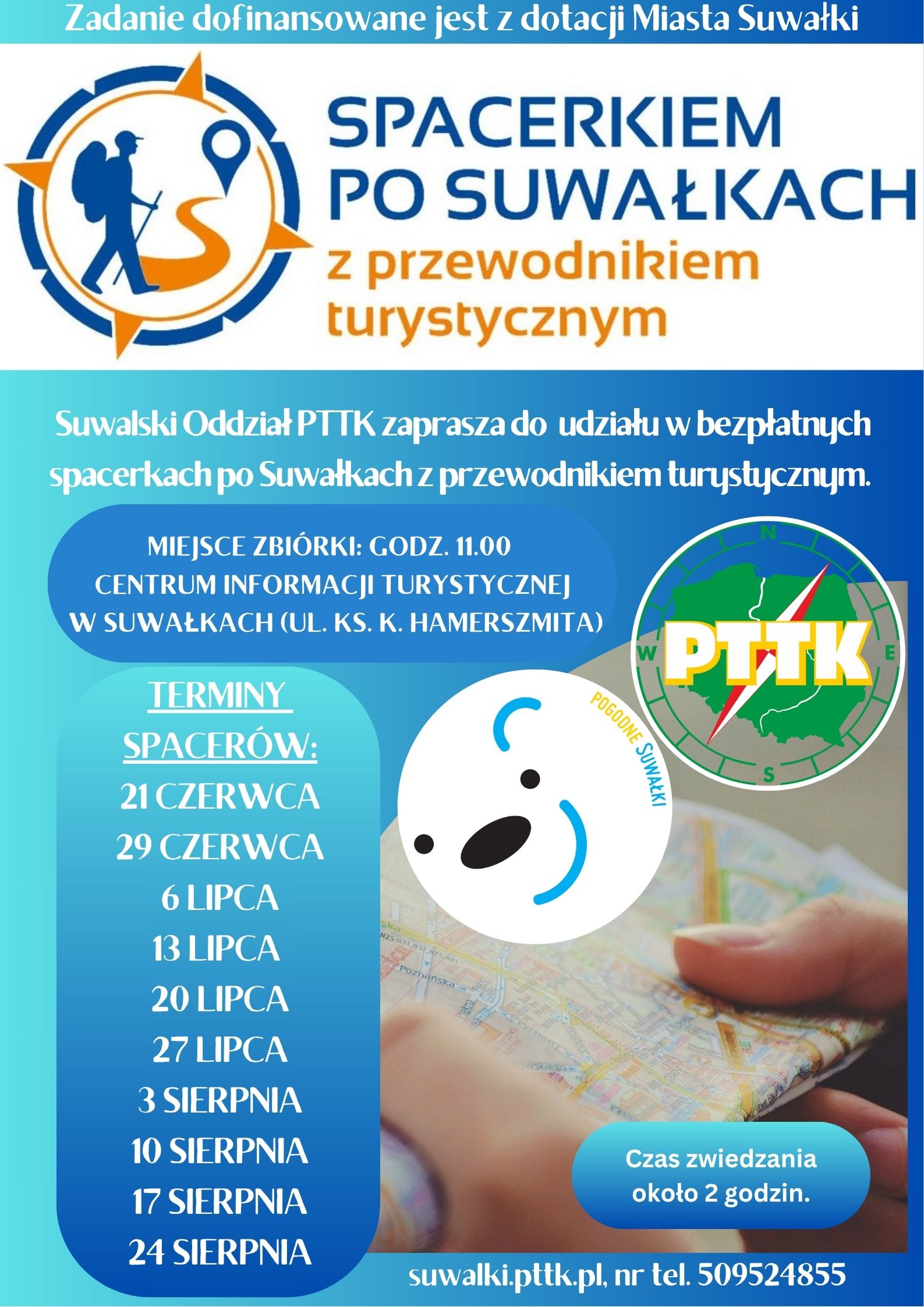 Polskie Towarzystwo Turystyczno-Krajoznawcze OddziaÅ‚ w SuwaÅ‚kach im. Jerzego Klimko z przyjemnoÅ›ciÄ… zaprasza mieszkaÅ„ców SuwaÅ‚k i goÅ›ci na tematyczne spacery po miejskich trasach turystycznych z przewodnikiem turystycznym PTTK.