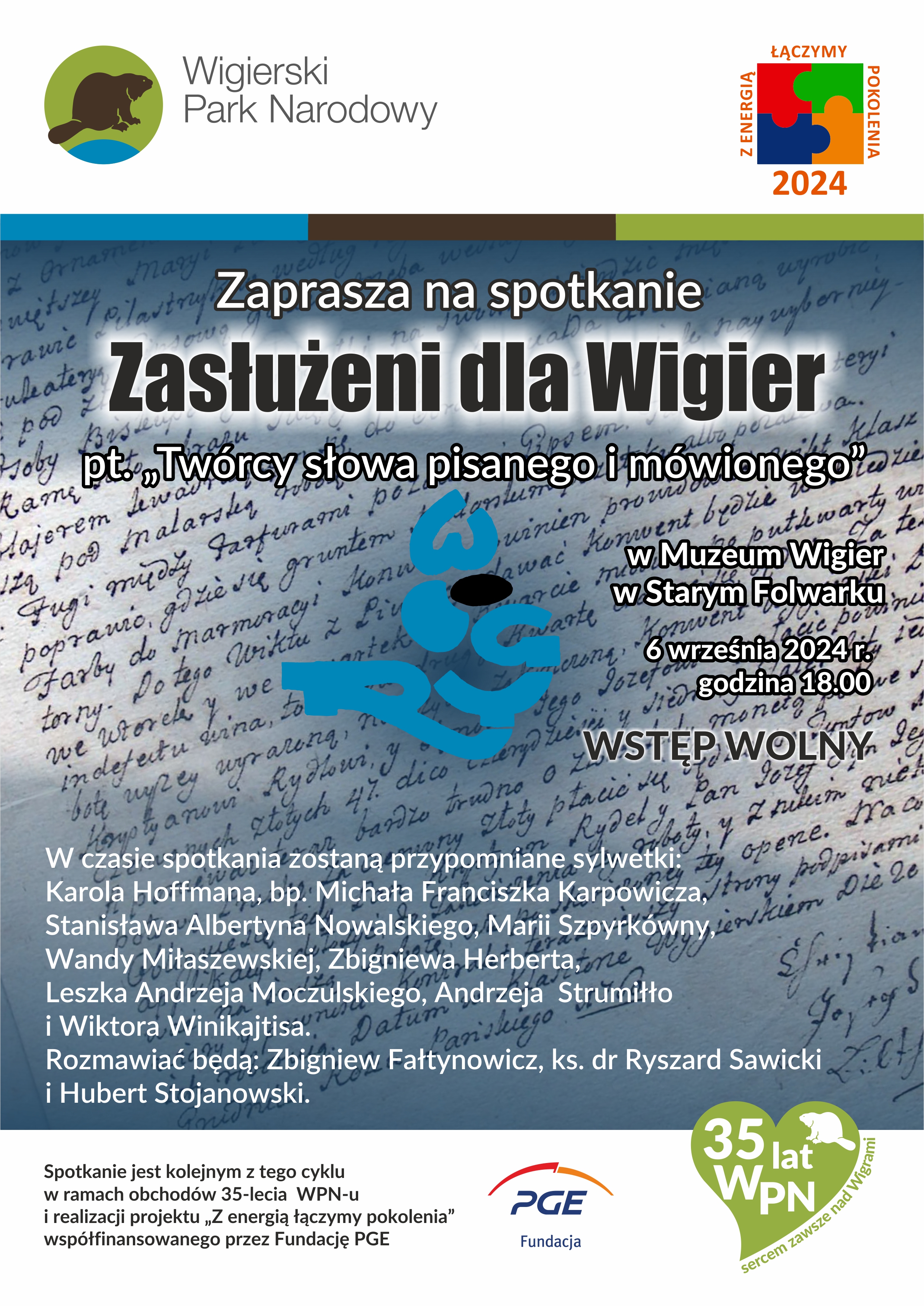 Wigierski Park Narodowy zaprasza na spotkanie z cyklu "Zasłużeni dla Wigier" pt. "Twórcy słowa pisanego i mówionego".