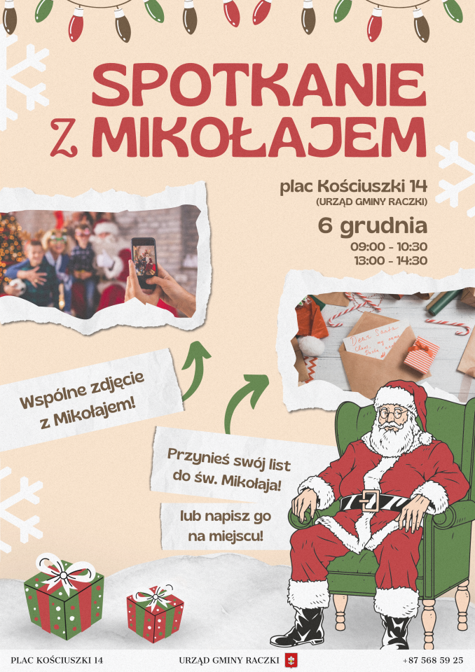 Urząd Gminy Raczki serdecznie zaprasza nie tylko najmłodszych na spotkanie z Mikołajem.
