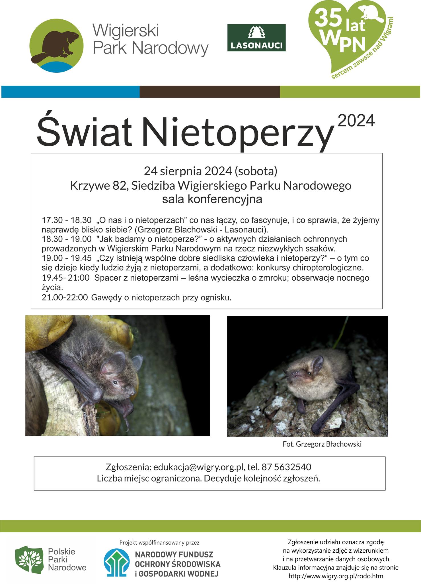 18.30 - 19.00 "Jak badamy o nietoperze?” - o aktywnych dziaÅ‚aniach ochronnych prowadzonych w Wigierskim Parku Narodowym na rzecz niezwykÅ‚ych ssaków.
